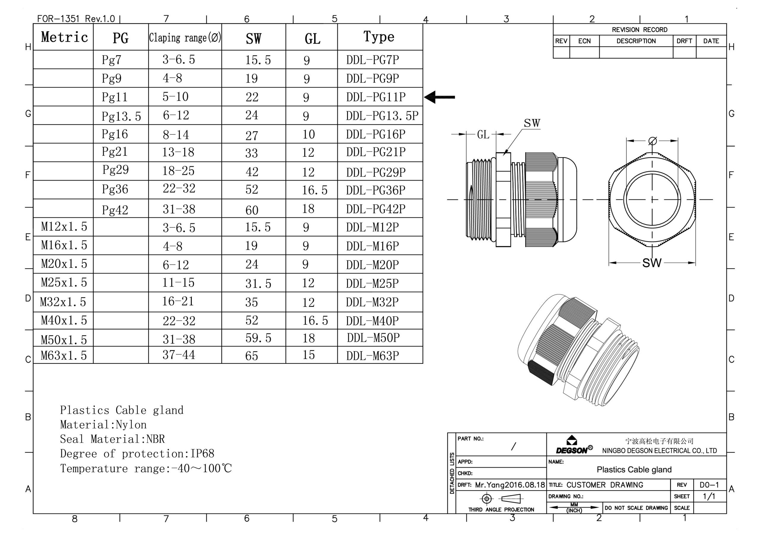 Кабельный ввод, PG9, пластик, черный, IP68, без гайки