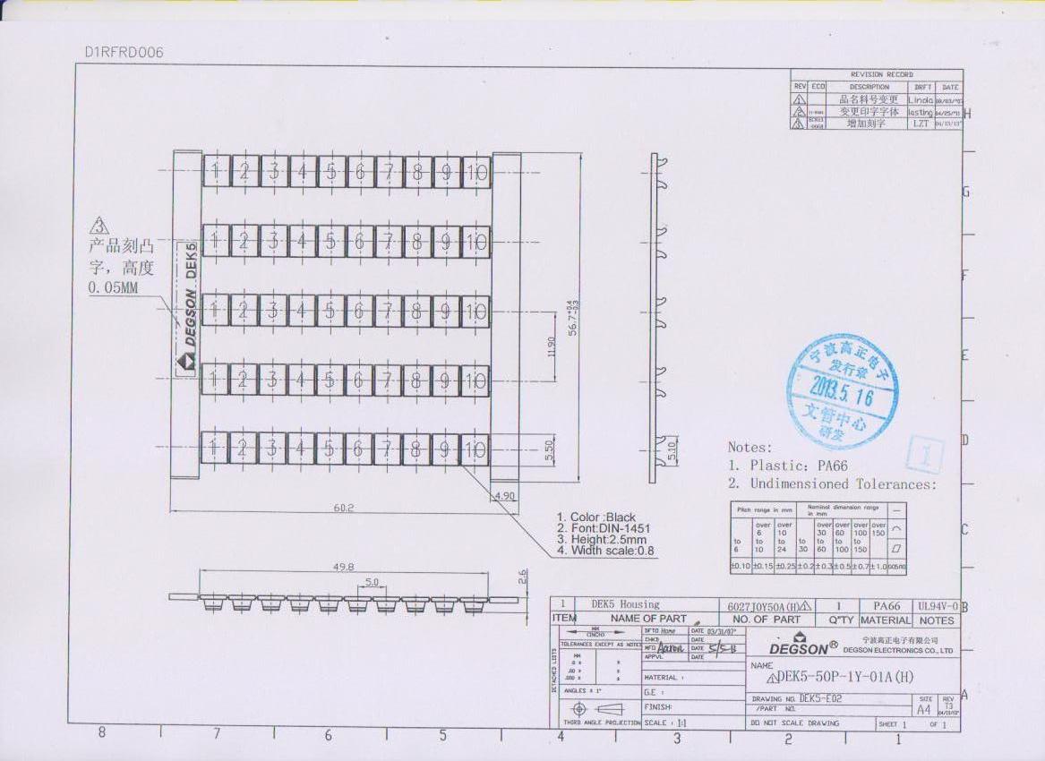 DEK5-50P-19-01Z(H), Маркировка, цифры 1-10 гориз,...