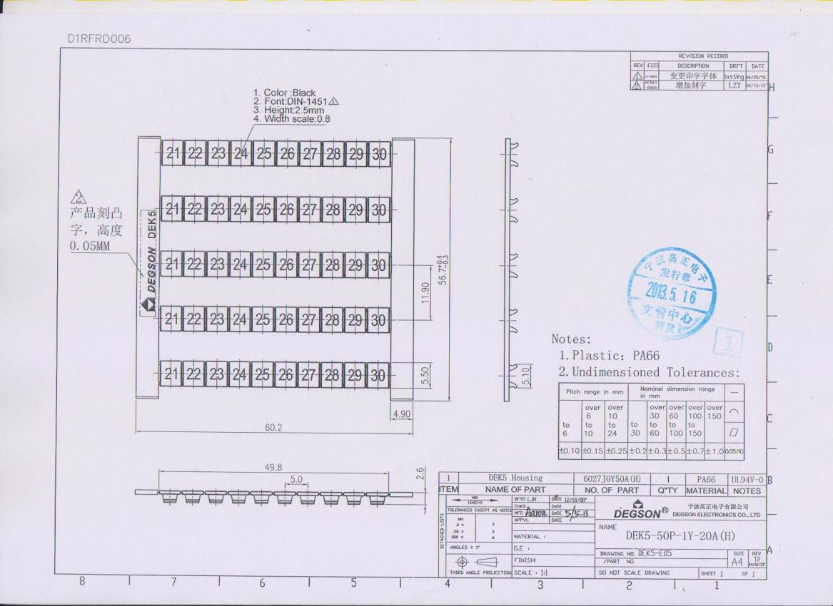 DEK5-50P-19-20Z(H), Маркировка, цифры 21-30 гориз,...