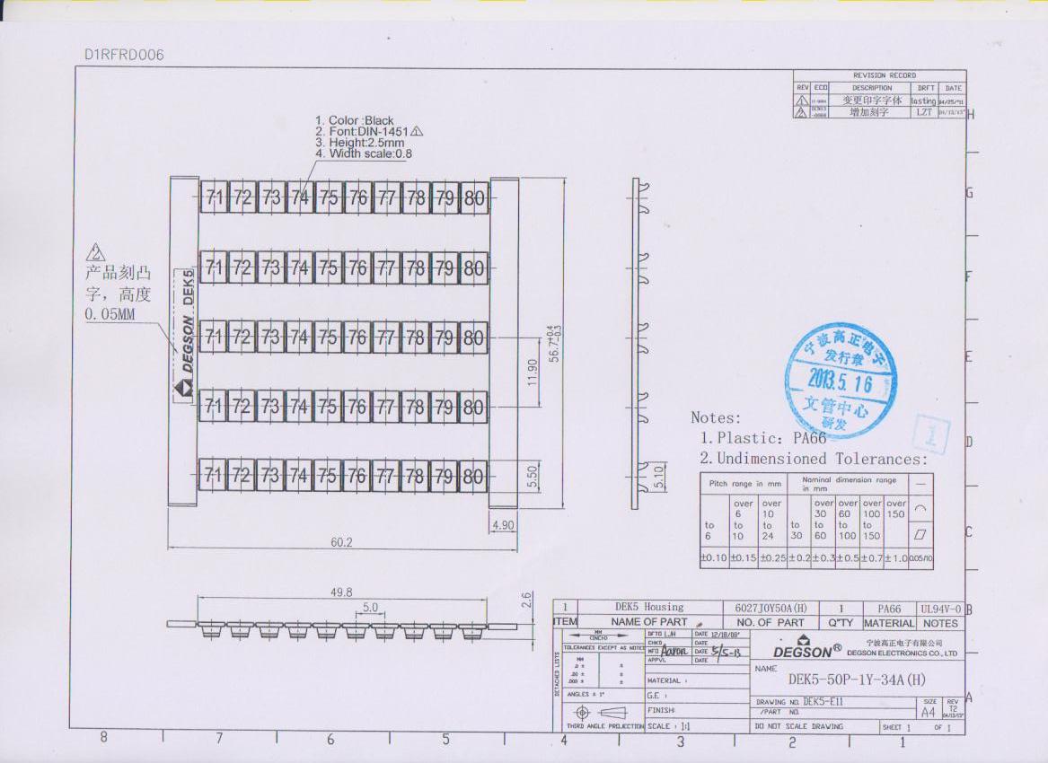 DEK5-50P-19-34Z(H), Маркировка, цифры 71-80 гориз,...