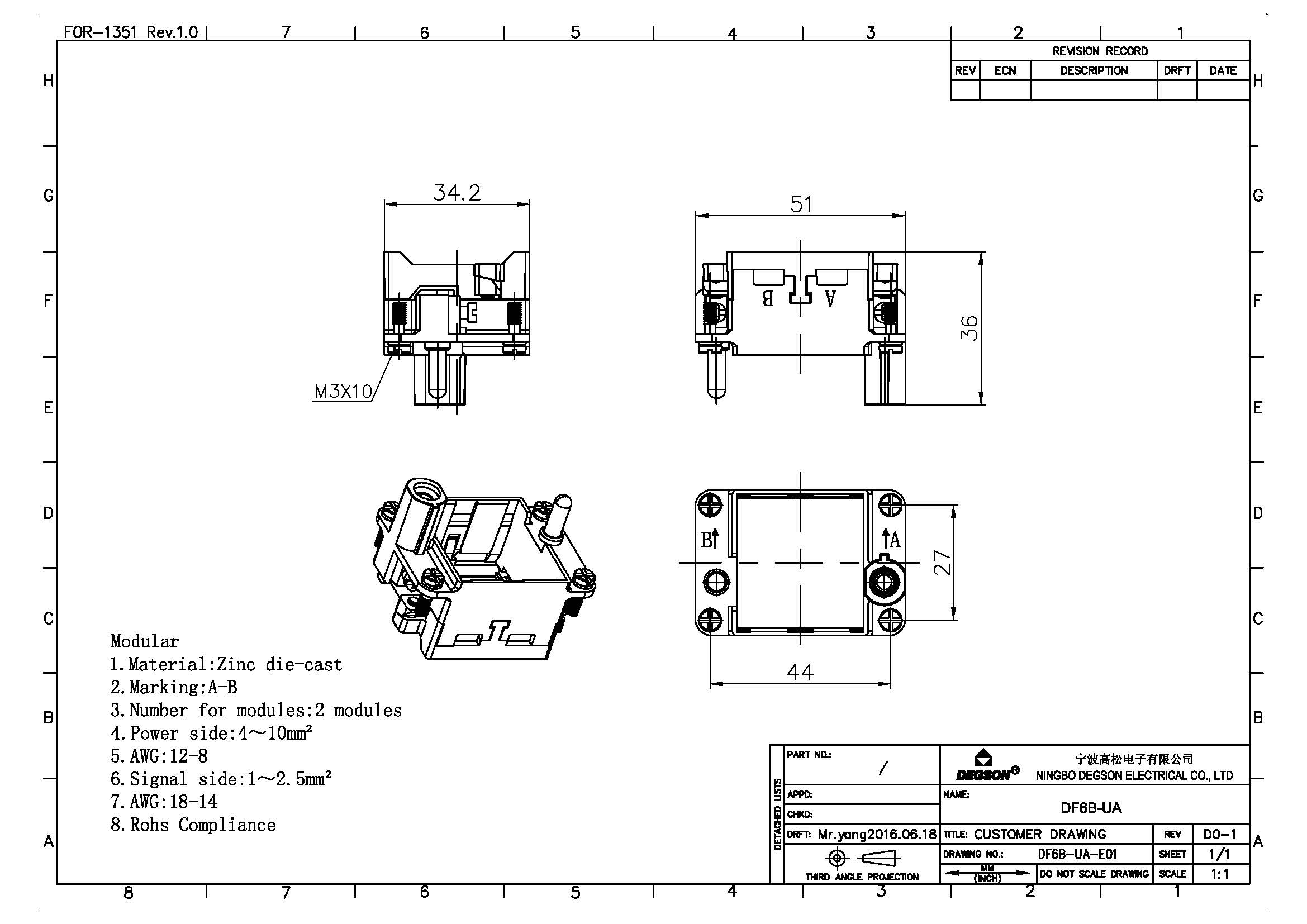 DF6B-UA, Держатель контактных вставок, 2 модуля,...