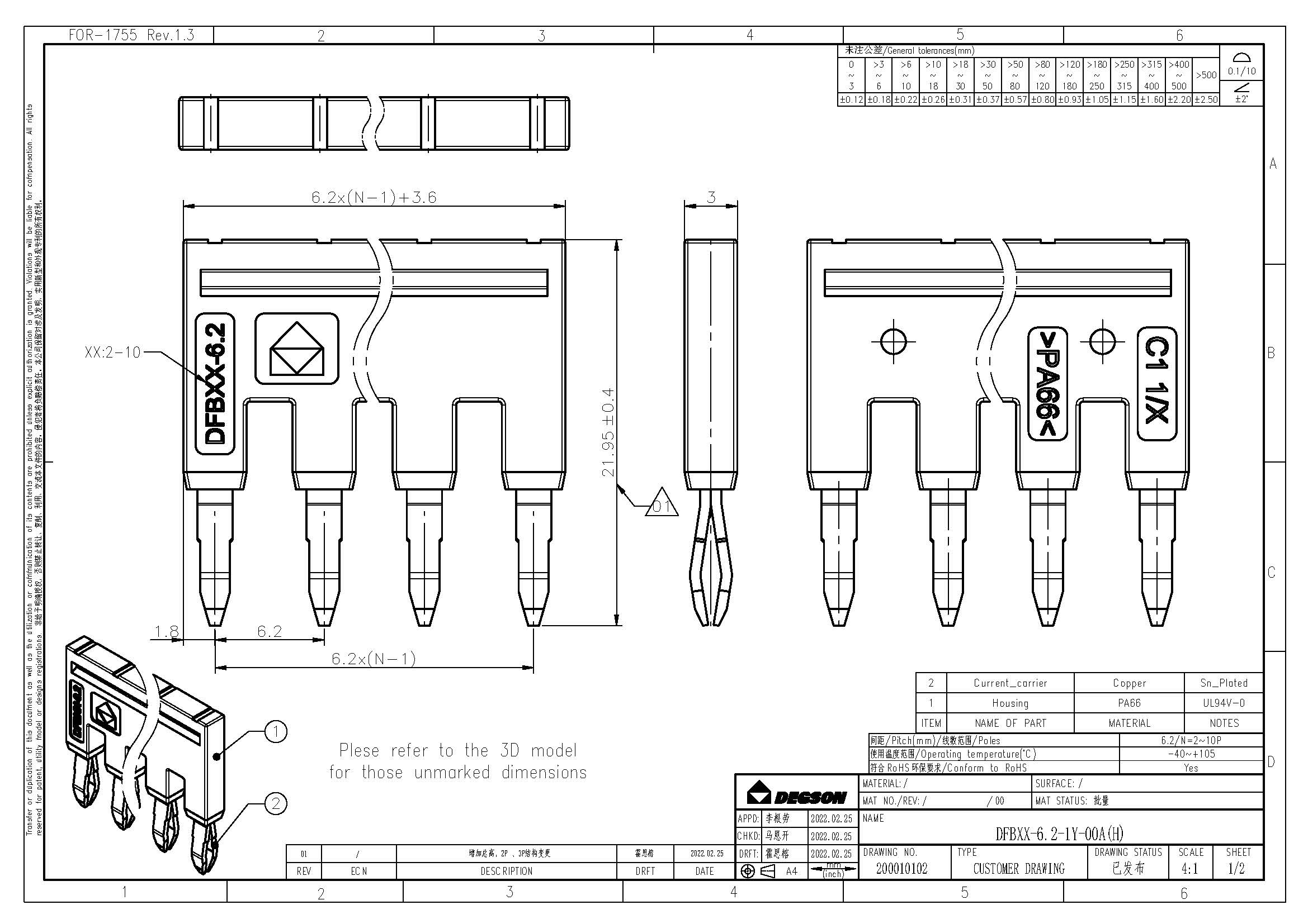 DFB3-6.2-16-00Z(H), Перемычка для клемм на дин-рейку,...