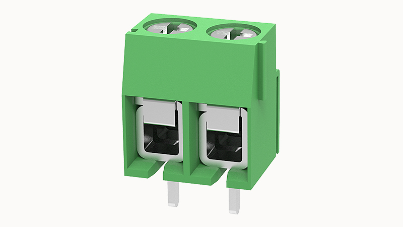 Клемма на печатную плату, 2 полюса, шаг 5.0 мм, зеленая