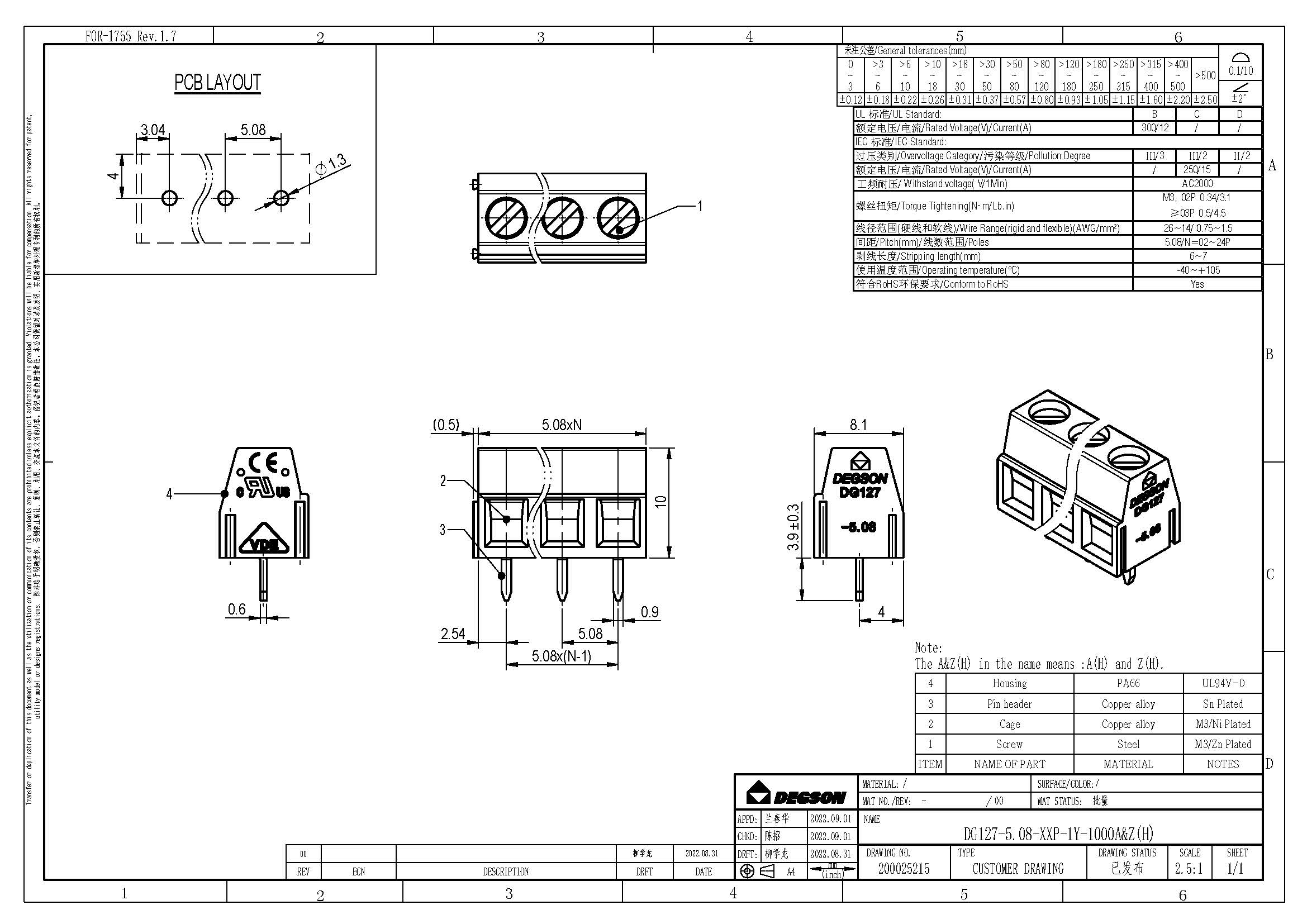 DG127-5.08-05P-14-00Z(H), Клемма на печатную плату, 5...