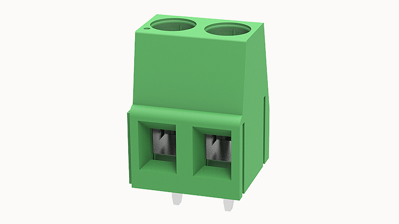 Клемма на печатную плату, 2 полюса, шаг 5.0 мм, зеленая