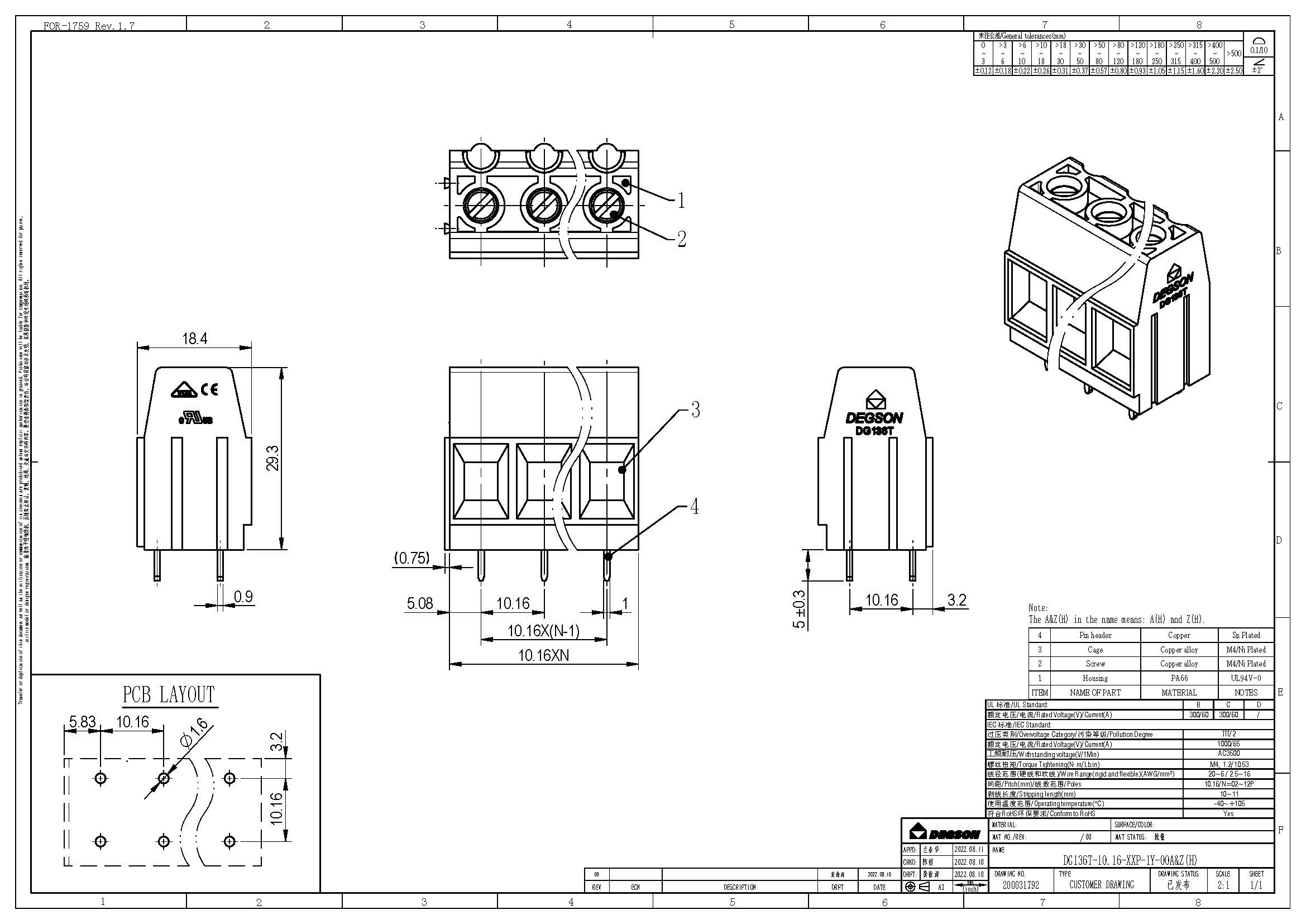 DG136T-10.16-02P-14-00Z(H), Клемма на печатную плату,...