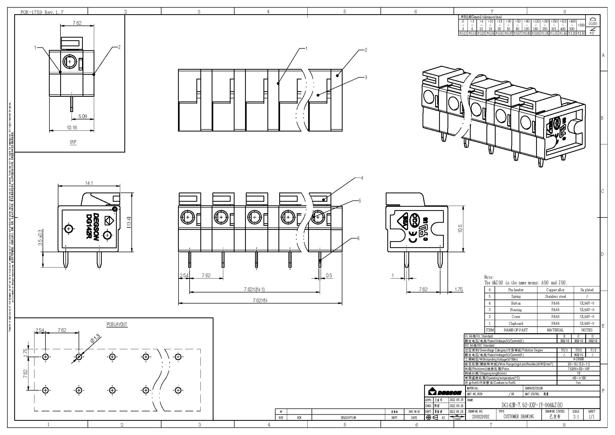 DG142R-7.62-04P-14-00Z(H), Клемма на печатную плату,...