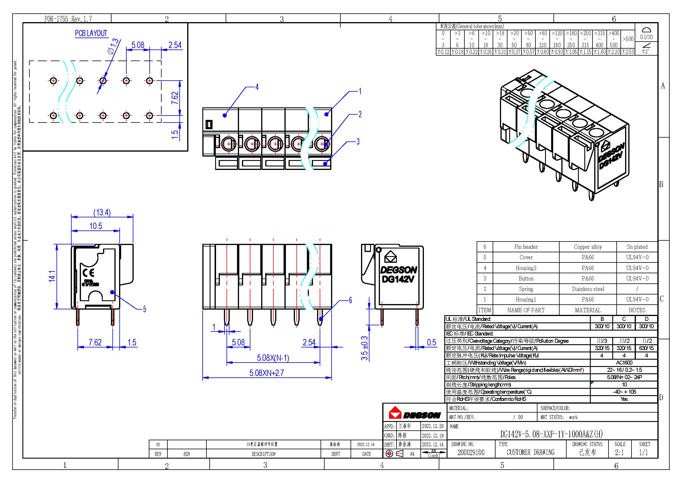 DG142V-5.08-03P-14-00Z(H), Клемма на печатную плату,...