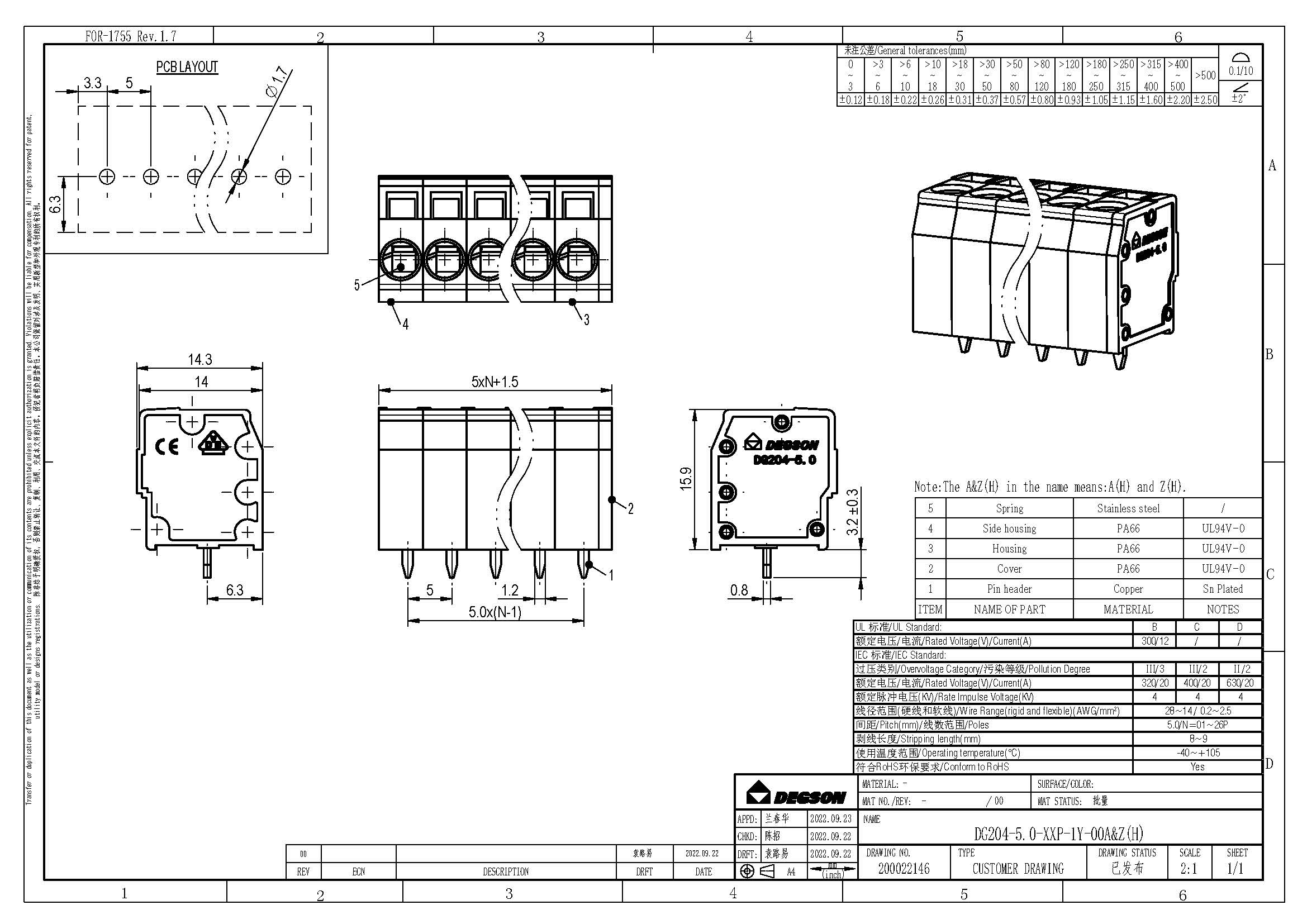 DG204-5.0-02P-11-00Z(H), Клемма на печатную плату, 2...