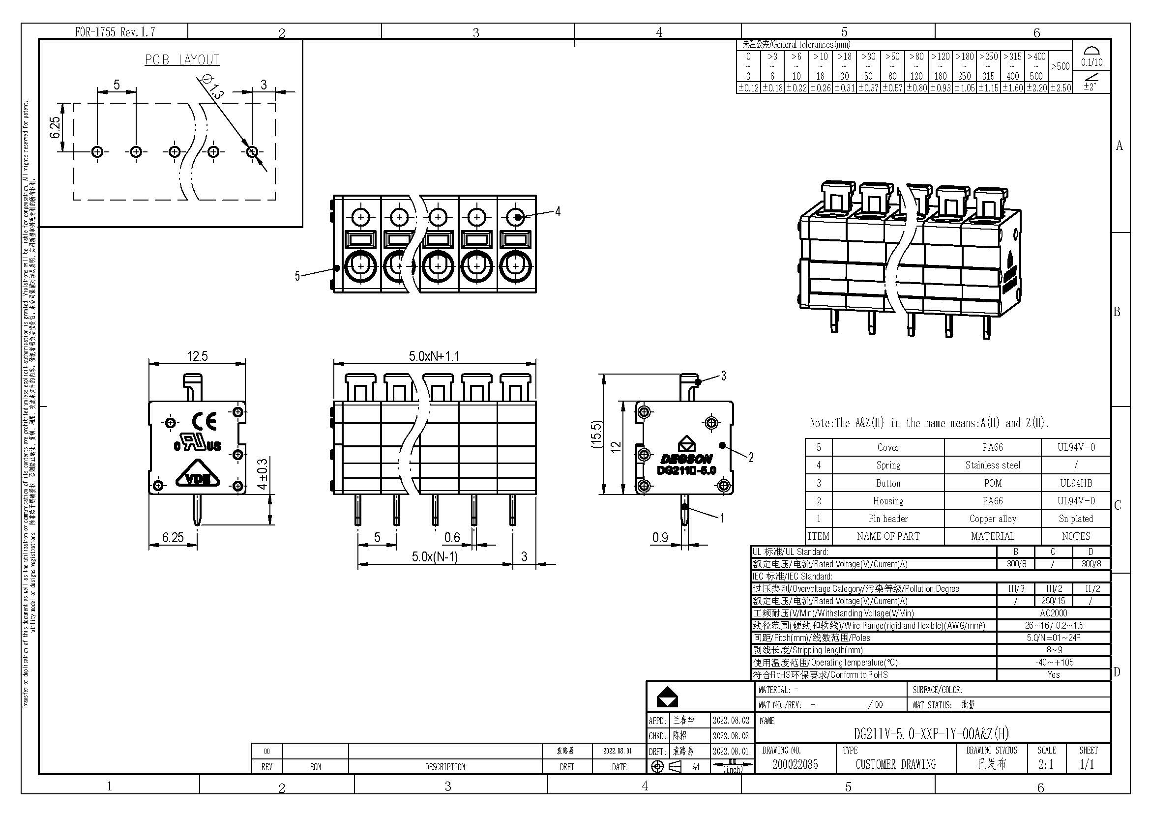 DG211V-5.0-10P-11-00Z(H), Клемма на печатную плату,...