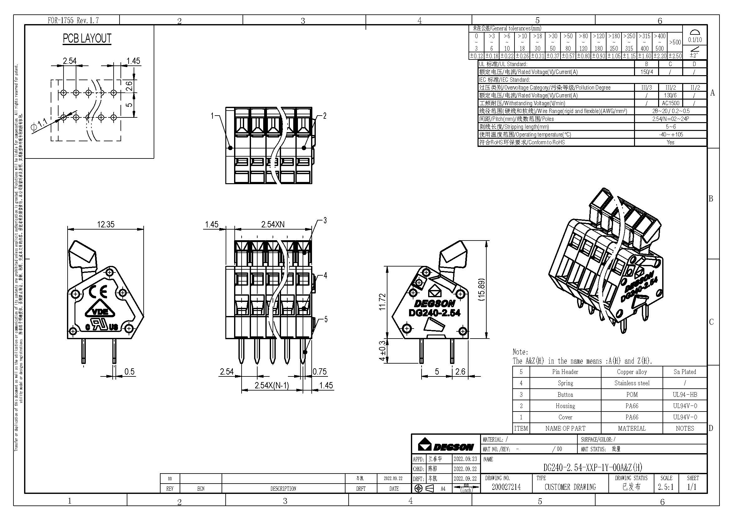 DG240-2.54-07P-15-00Z(H), Клемма на печатную плату, 7...