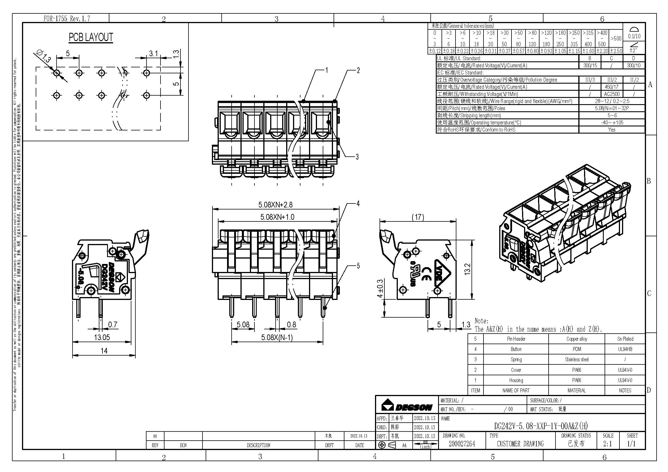 DG242V-5.08-06P-11-00Z(H), Разъем на печатную плату,...