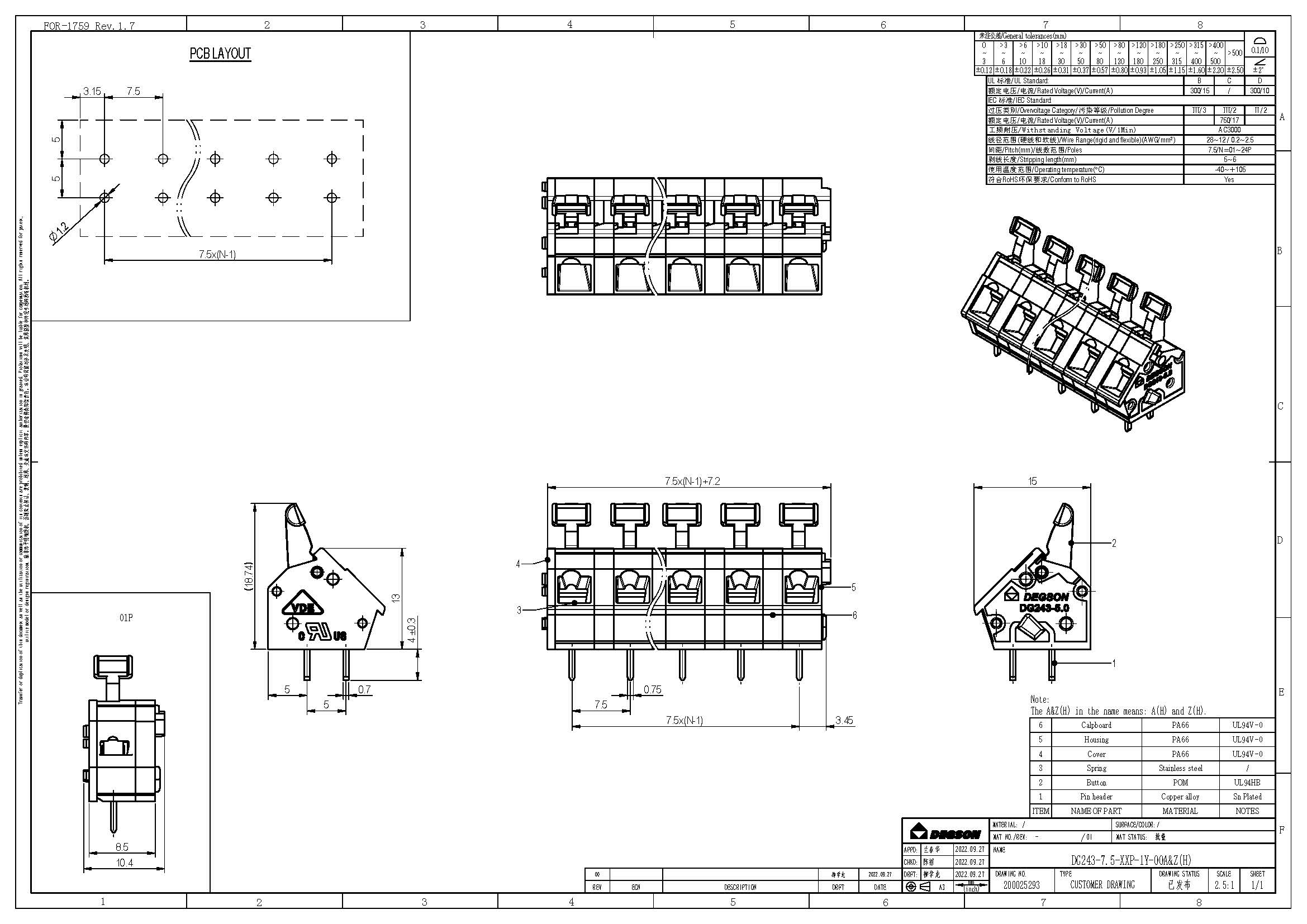 DG243-7.5-07P-11-00Z(H), Клемма на печатную плату, 7...