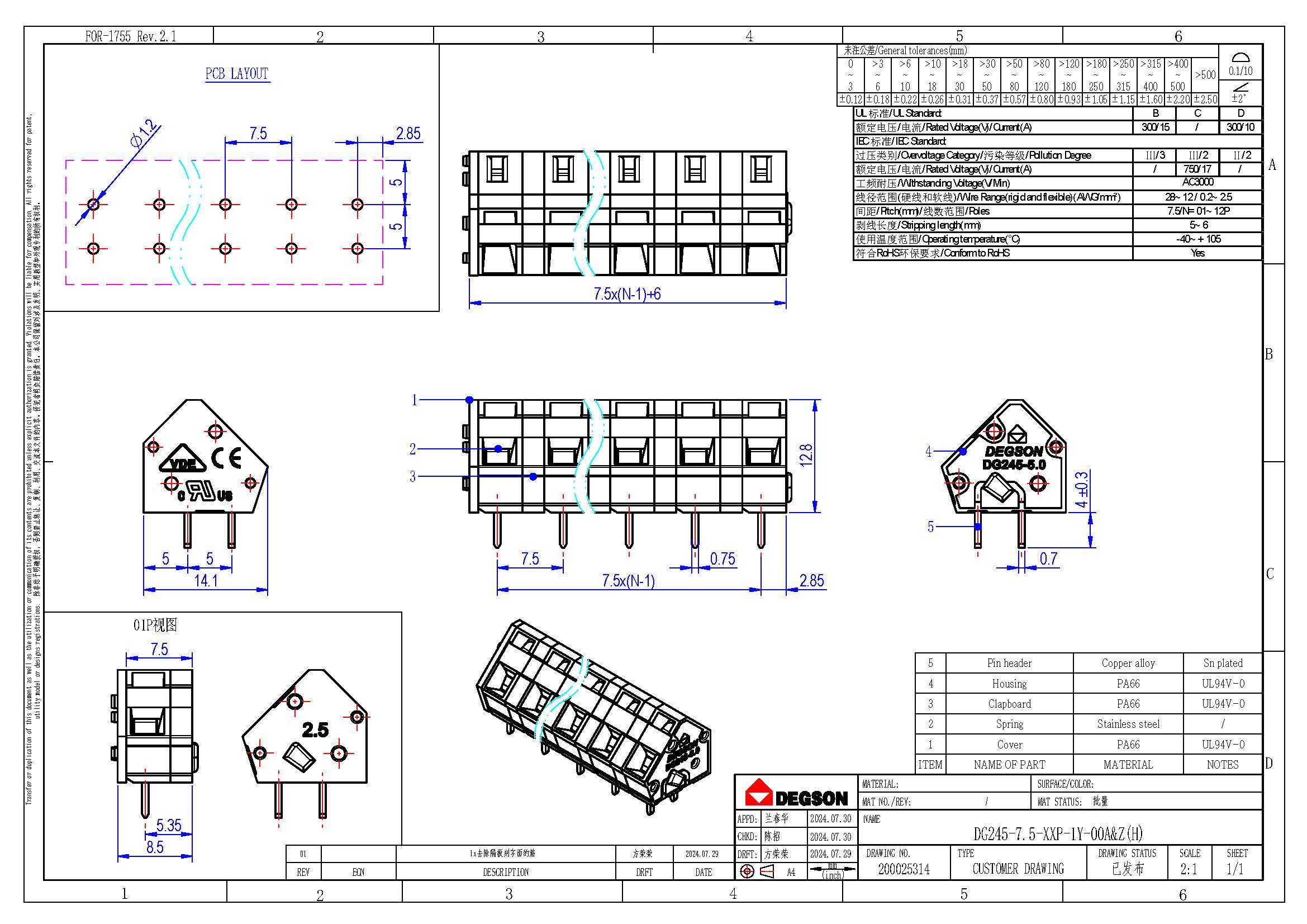 DG245-7.5-01P-11-00Z(H), Клемма на печатную плату, 1...