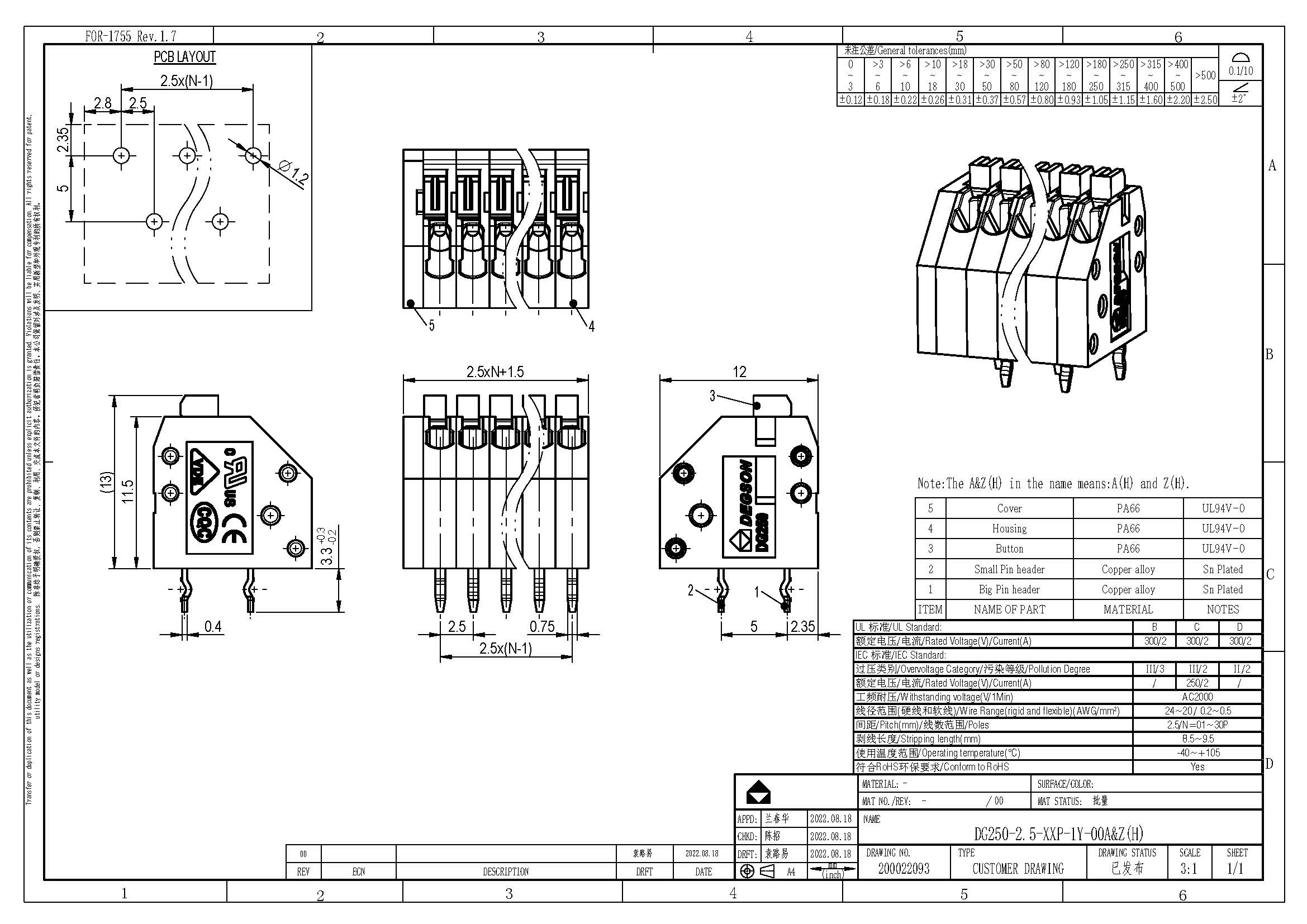 DG250-2.5-02P-11-00Z(H), Клемма на печатную плату, 2...