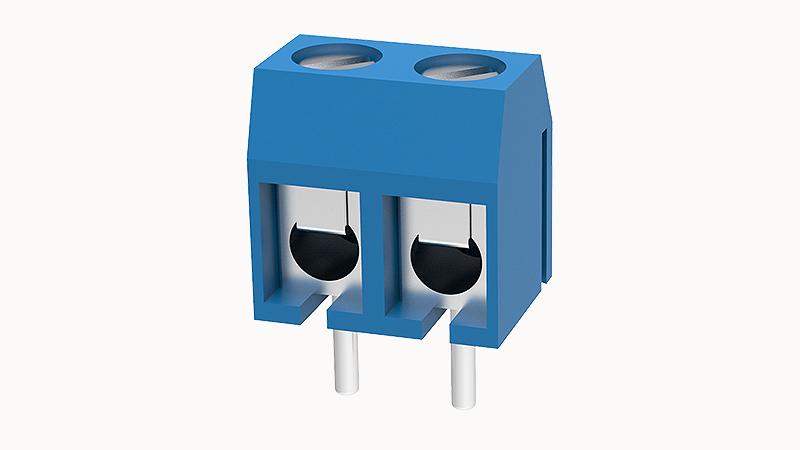 Клемма на печатную плату, 2 полюса, шаг 5.0 мм, синия