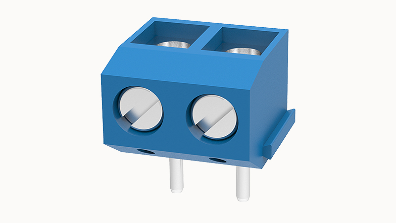 Клемма на печатную плату, 2 полюса, шаг 5.0 мм, синия