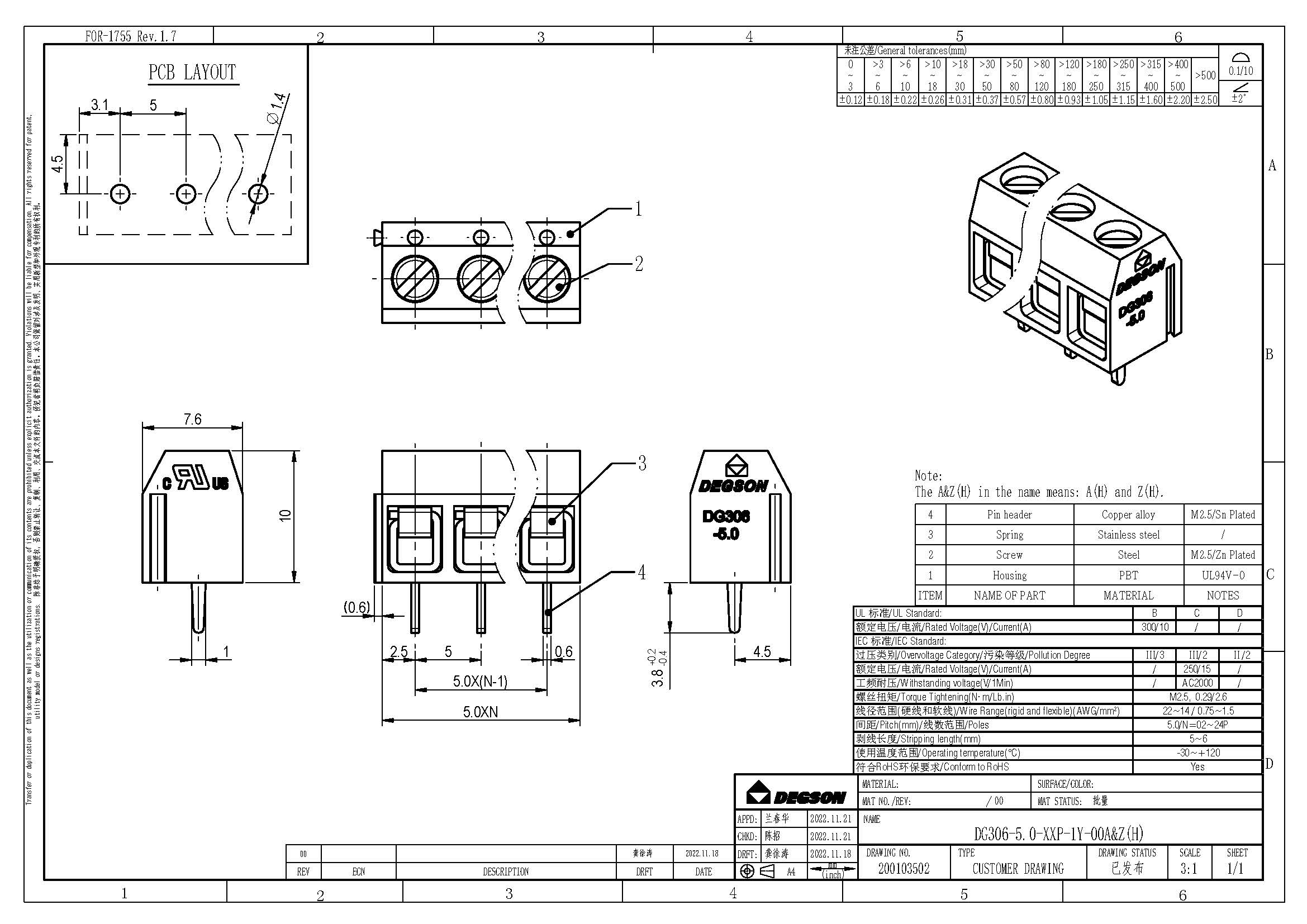 DG306-5.0-02P-12-00Z(H), Клемма на печатную плату, 2...