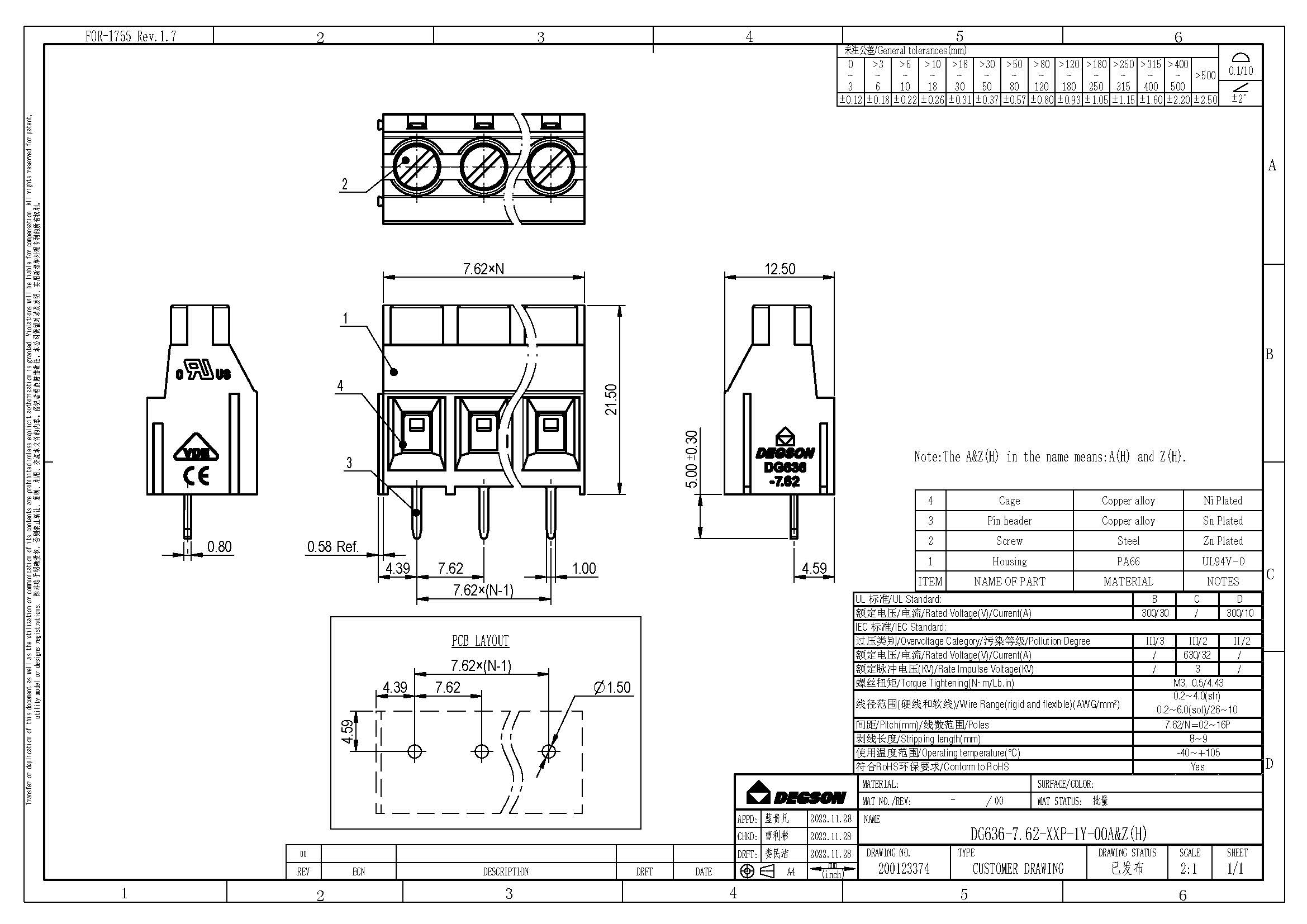 DG636-7.62-02P-14-00Z(H), Клемма на печатную плату, 2...