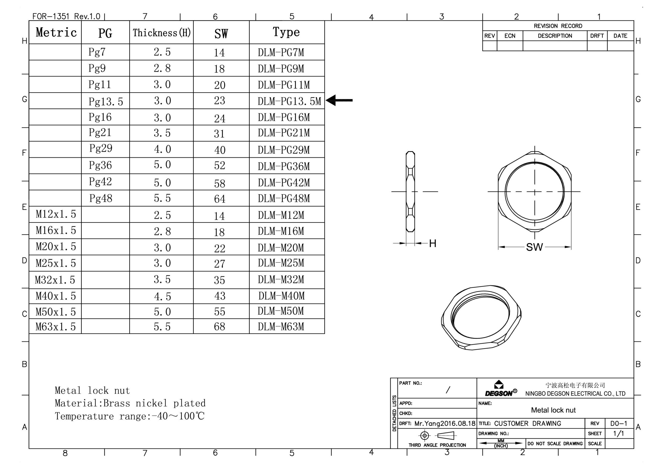 Гайка PG13.5, металлическая