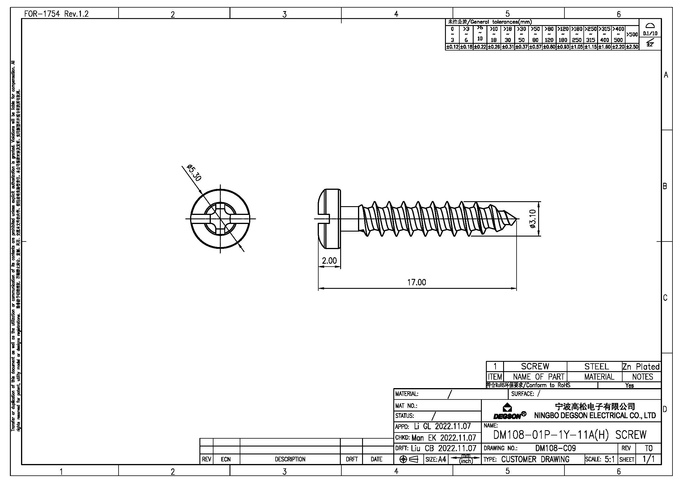 DM108-01P-1Y-11Z(H) SCREW