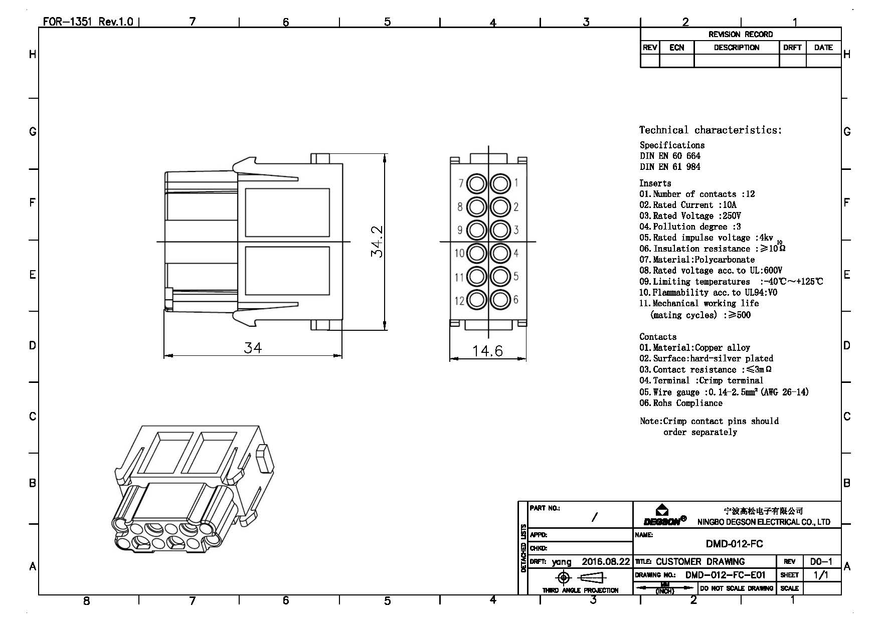 DMD-012-FC, Вставка в разъем под рамку, 12 конт, 1...