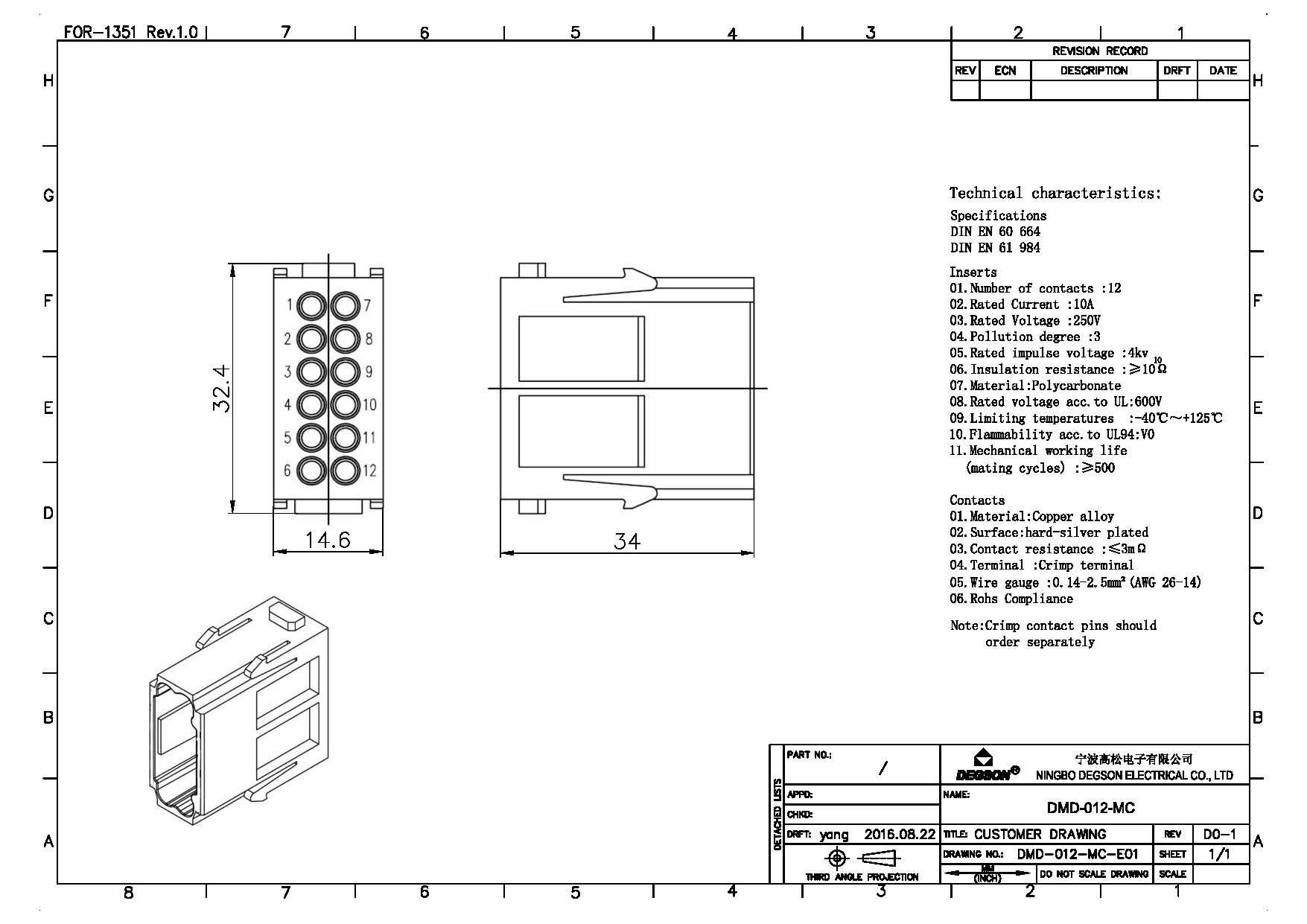DMD-012-MC, Вставка в разъем под рамку, 12 конт, 1...