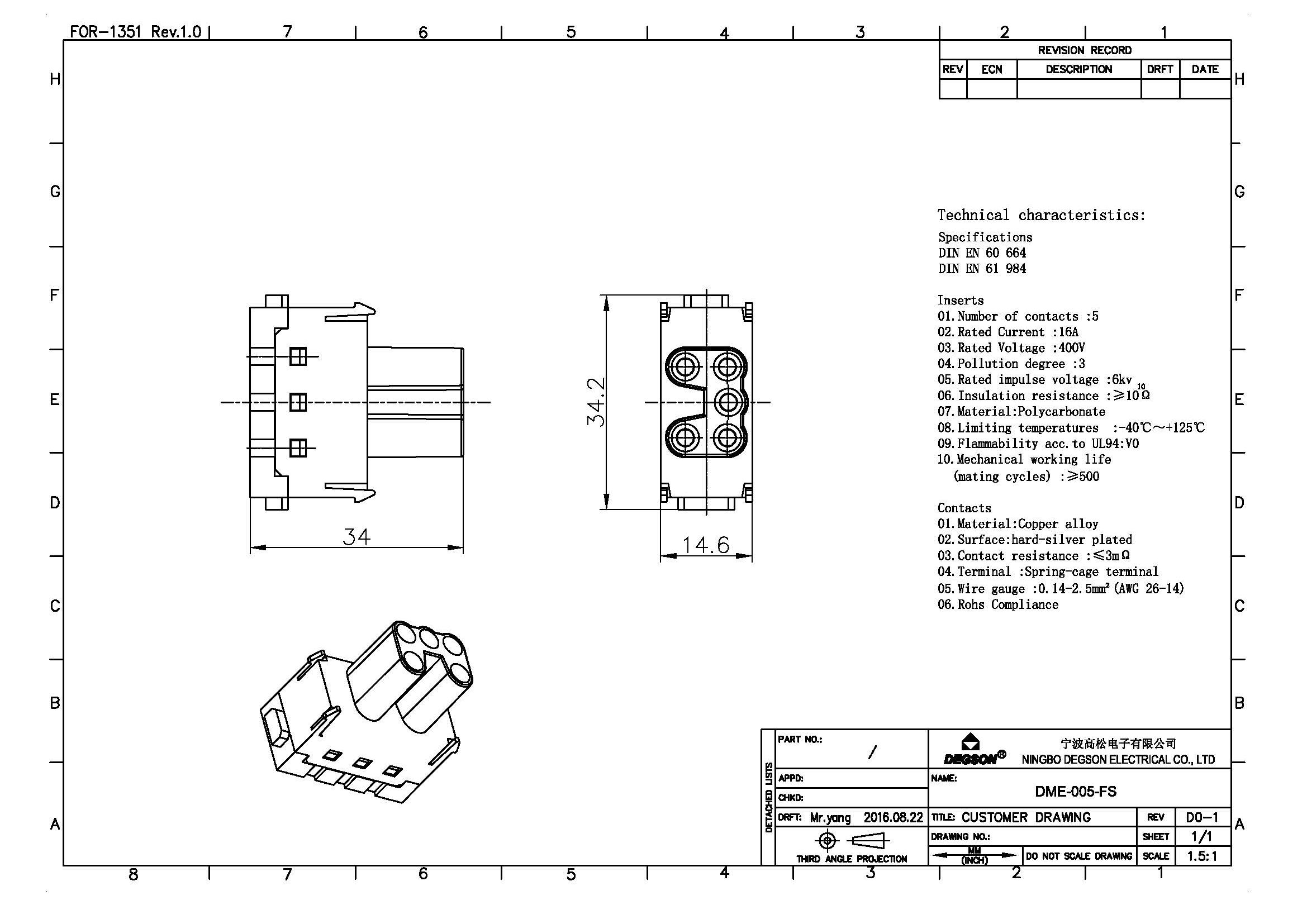 Вставка в разъем под рамку, 5 контактов, 1 модуль, 400В, 16А, 0,14-2,5 кв.мм, вилка, пружинный зажим
