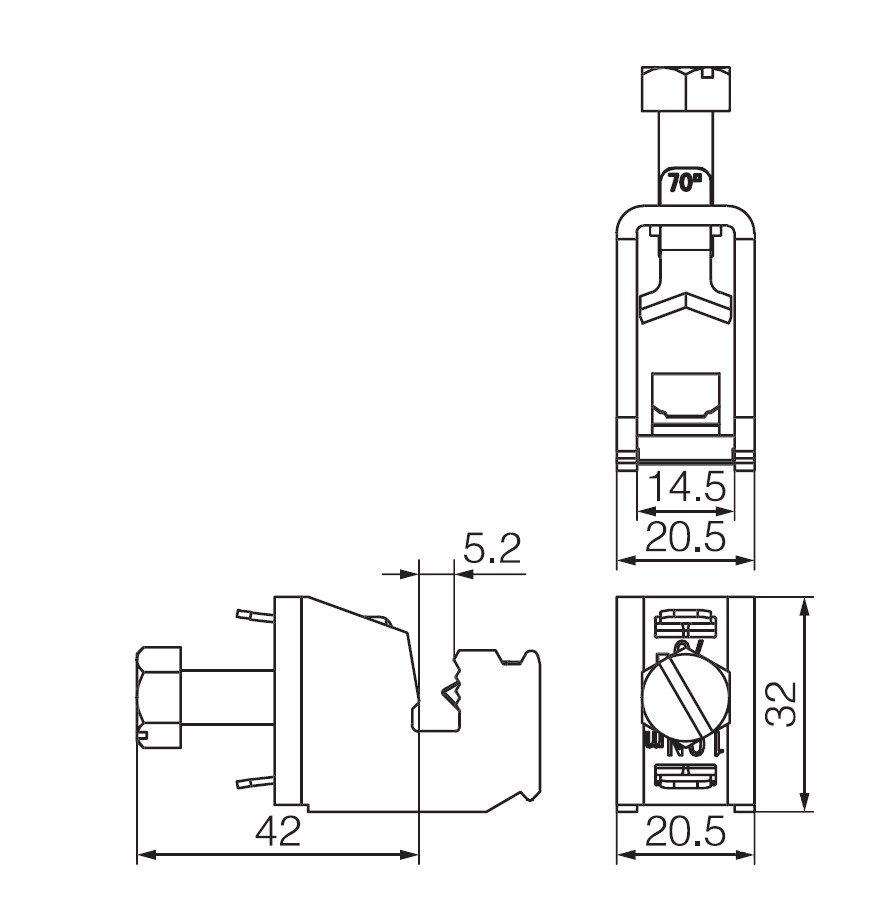 LJJ-70 Клемма, шина 5 мм, 16-70 мм