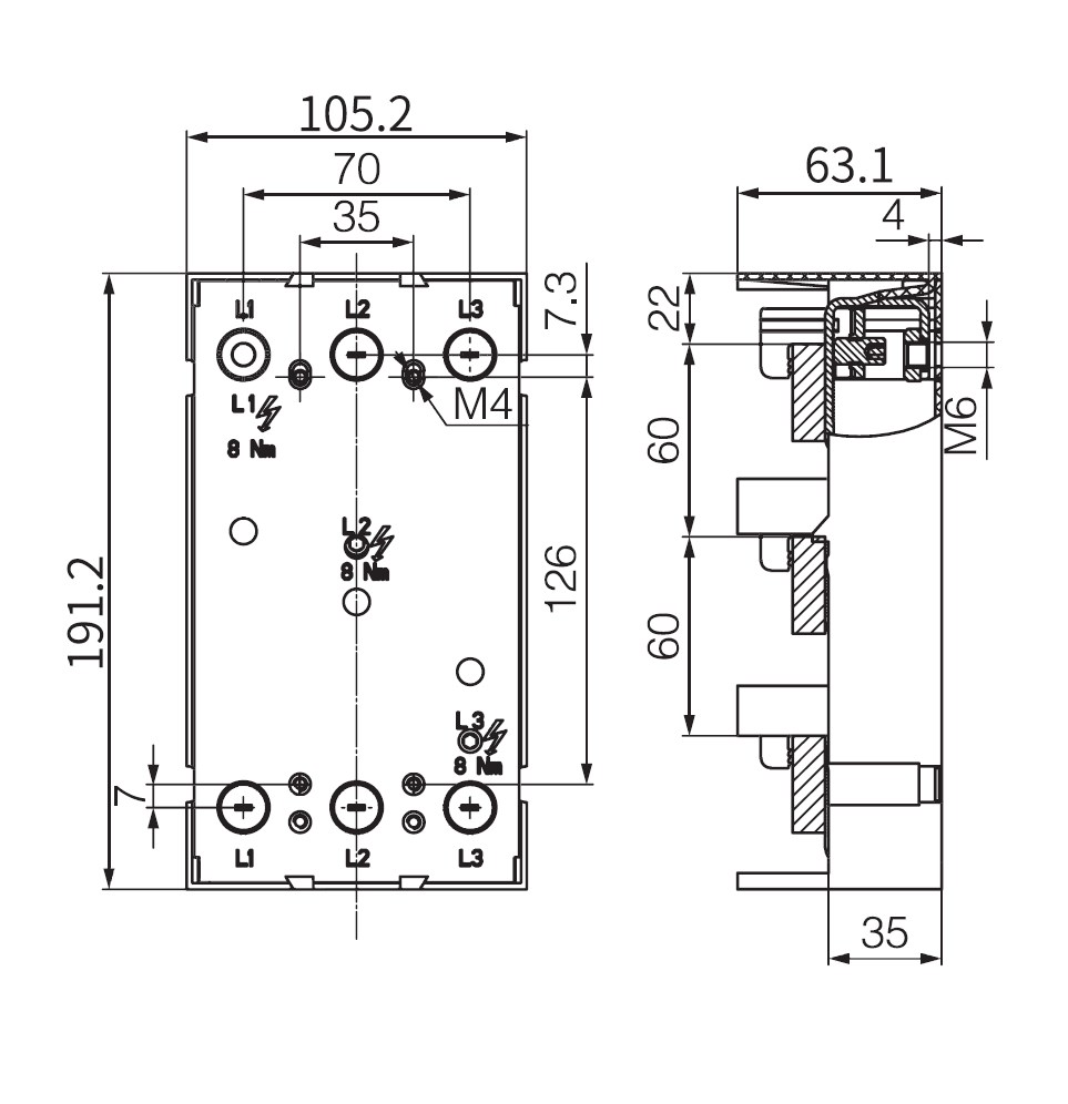 ZJQ-250 Адаптер, 35x126xМ4, 250А, 3-полюсный