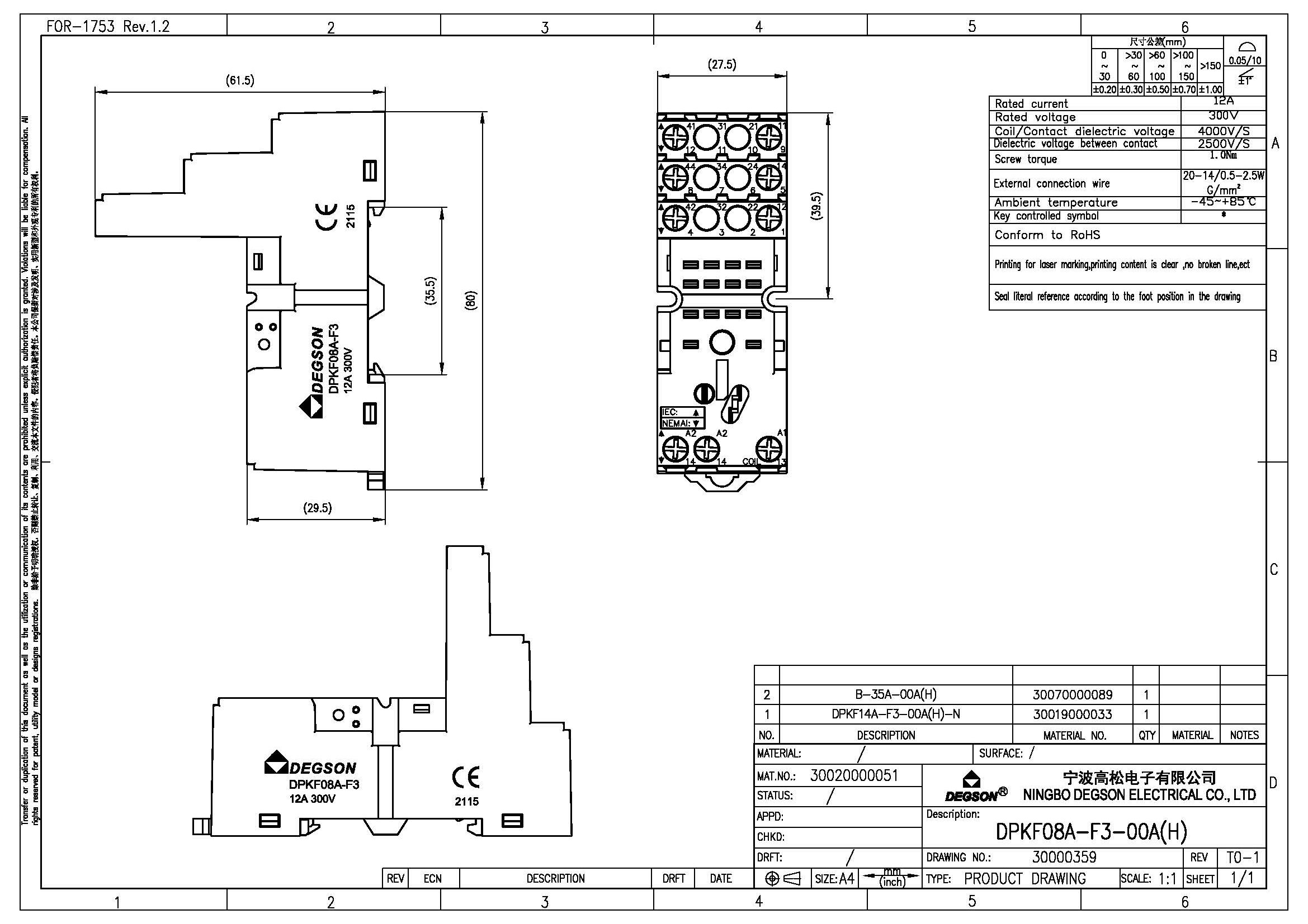 Розетка для реле DRPE-2CH, 12А, винт, черная