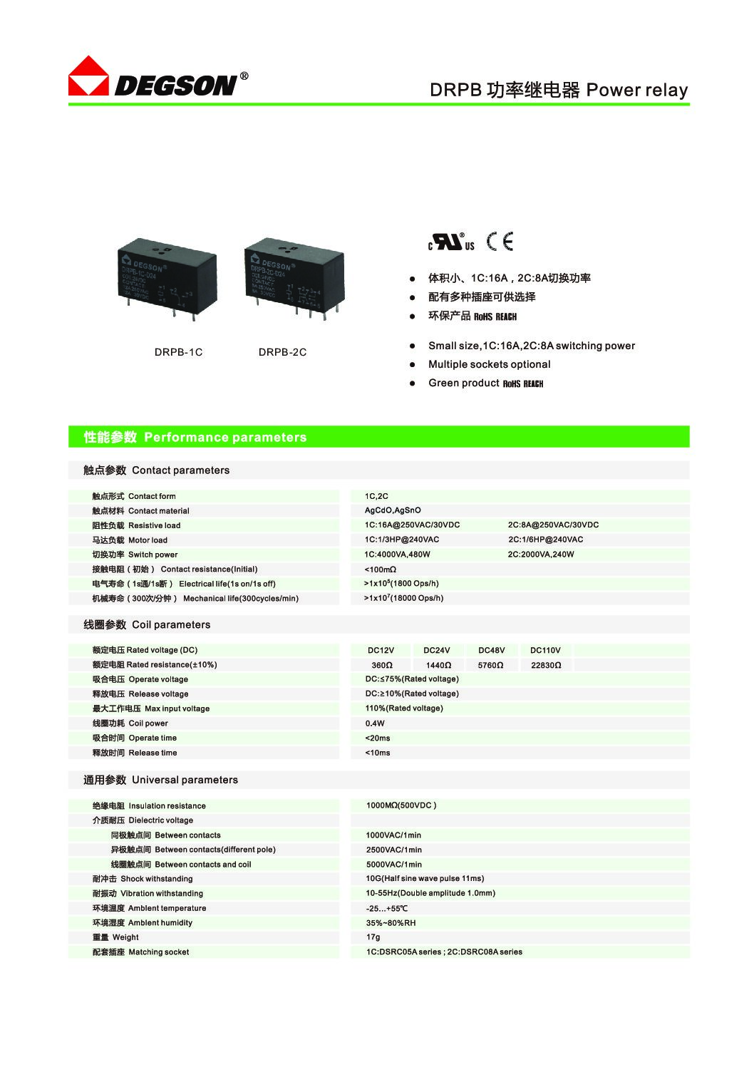 DRPB-2C-D24-06Z(H), Реле, 2CO, 24VDC, 8A, прозр