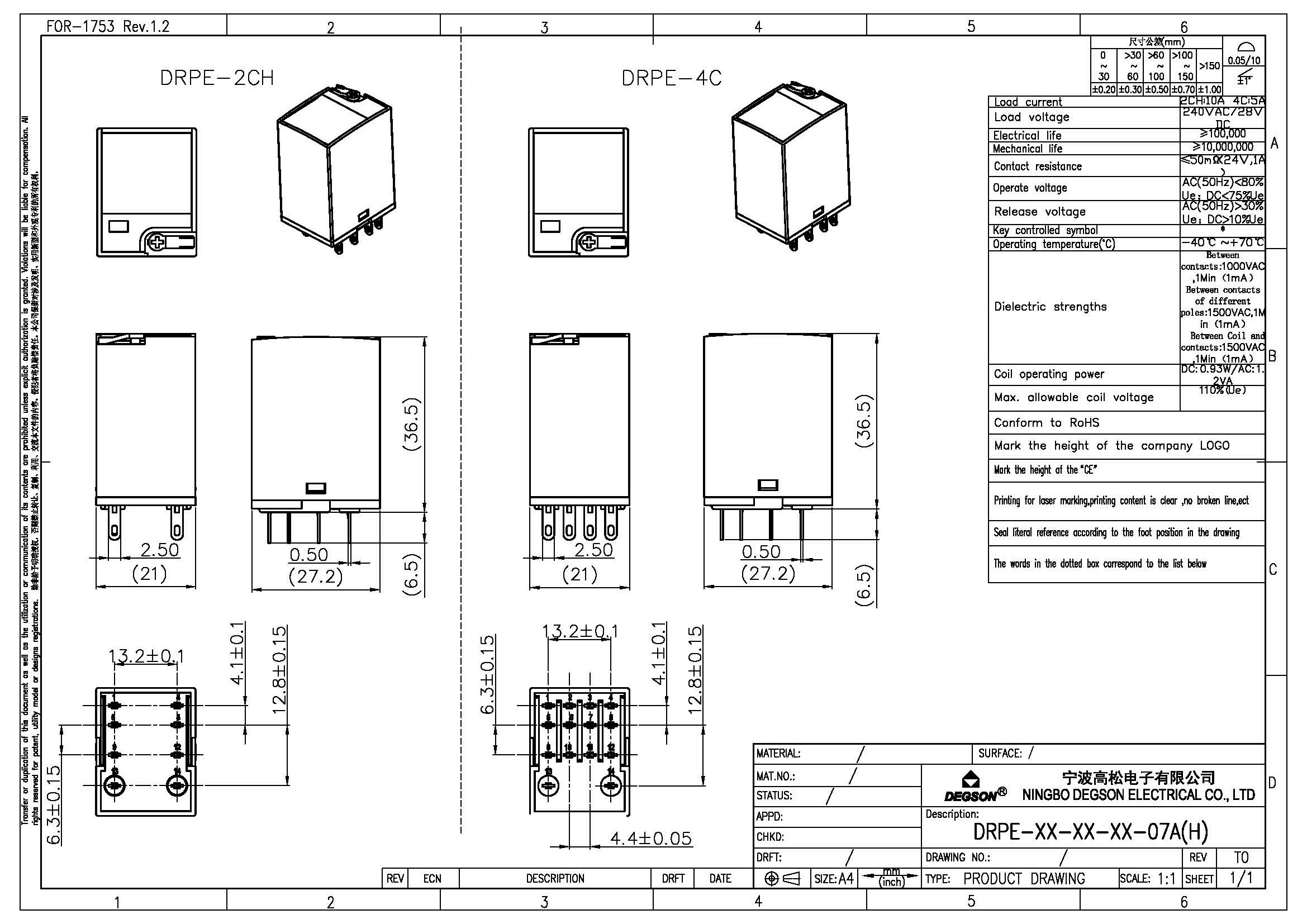 Реле, 2CO, 24VDC, 10A, LED+тест кнопка