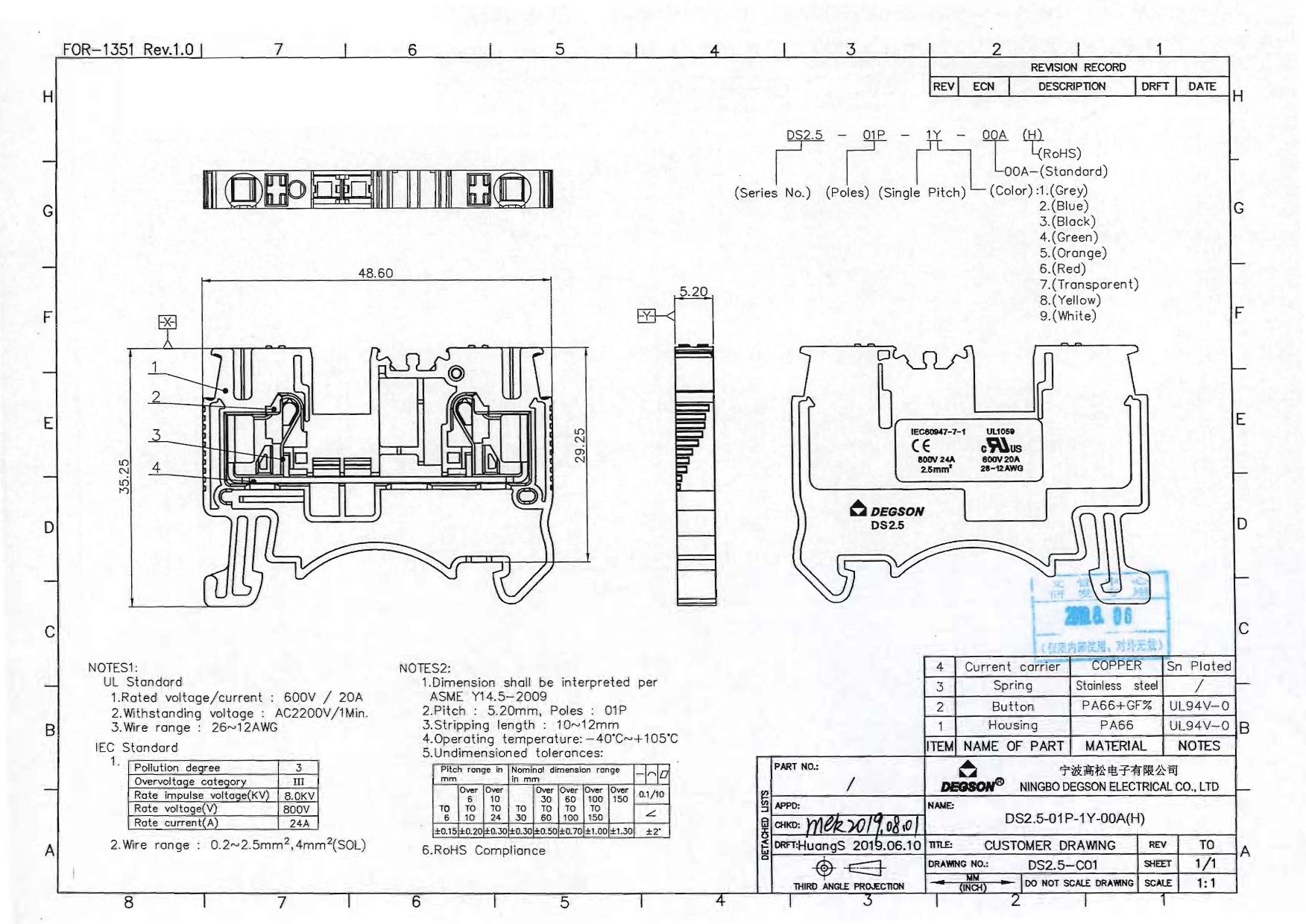 Клемма на дин-рейку, 2.5 кв.мм, 1 ур., 2 конт, Push-In, черная