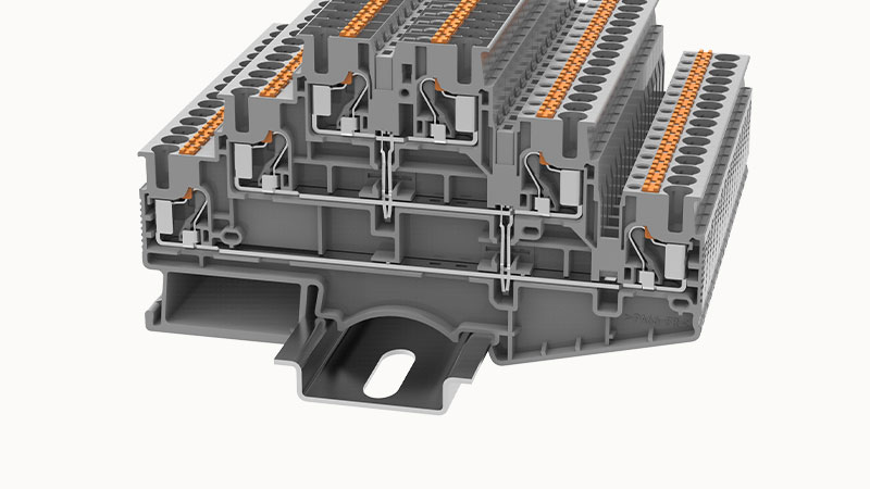 Клемма на дин-рейку, 2,5 кв.мм, 3 ур., 6 конт, Push-In, серая