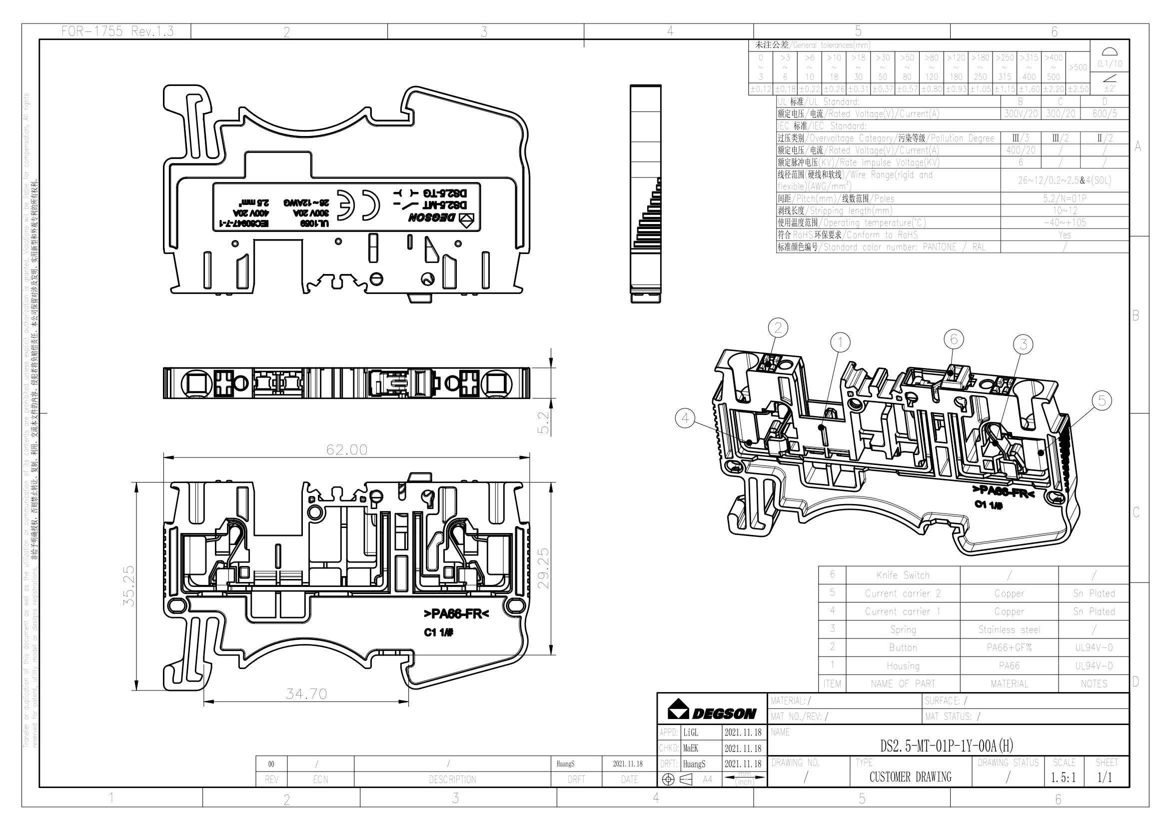 Клемма на дин-рейку, для измерений, 2.5 кв.мм, 1 ур., 2 конт, Push-In, синяя