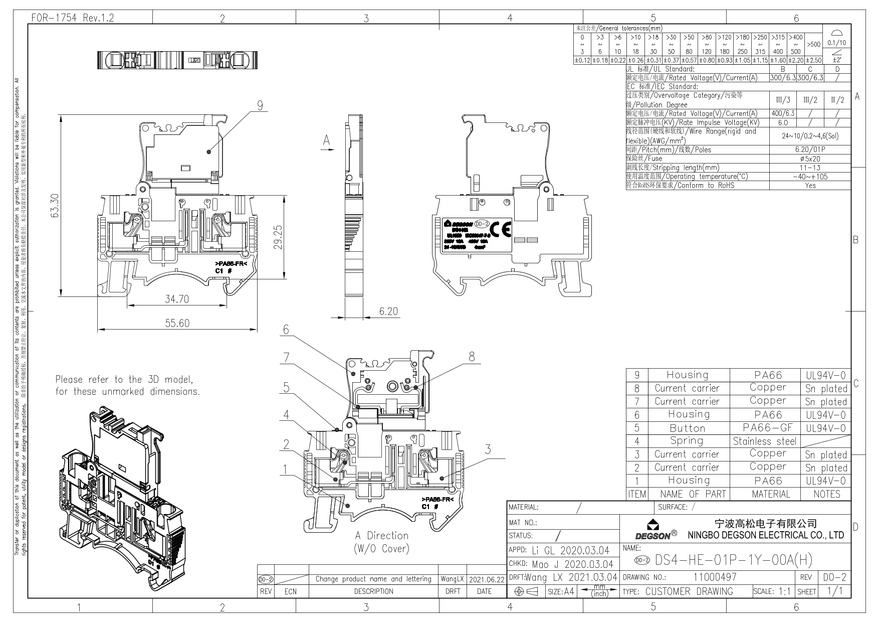 Клемма на дин-рейку, под предохранитель, 4 кв.мм, 1 ур., 2 конт, push in, оранжевая