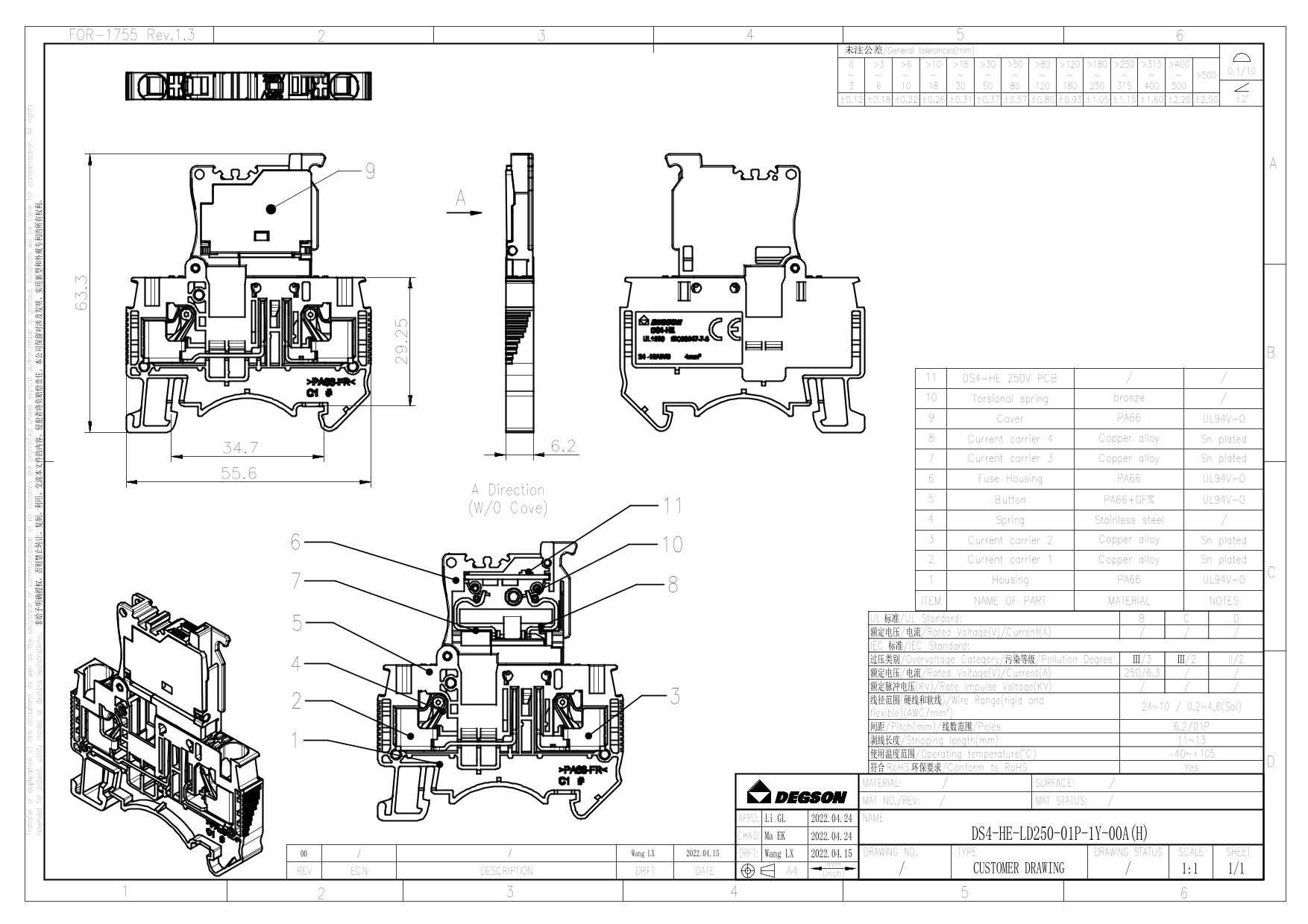 Клемма на дин-рейку, под предохранитель, с индикатором, 4 кв.мм, 1 ур., 2 конт, Push-In, черная