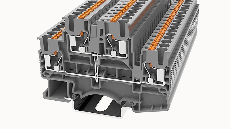 Клемма на дин-рейку, 2.5 кв.мм, 2 ур., 4 конт, push in, серая