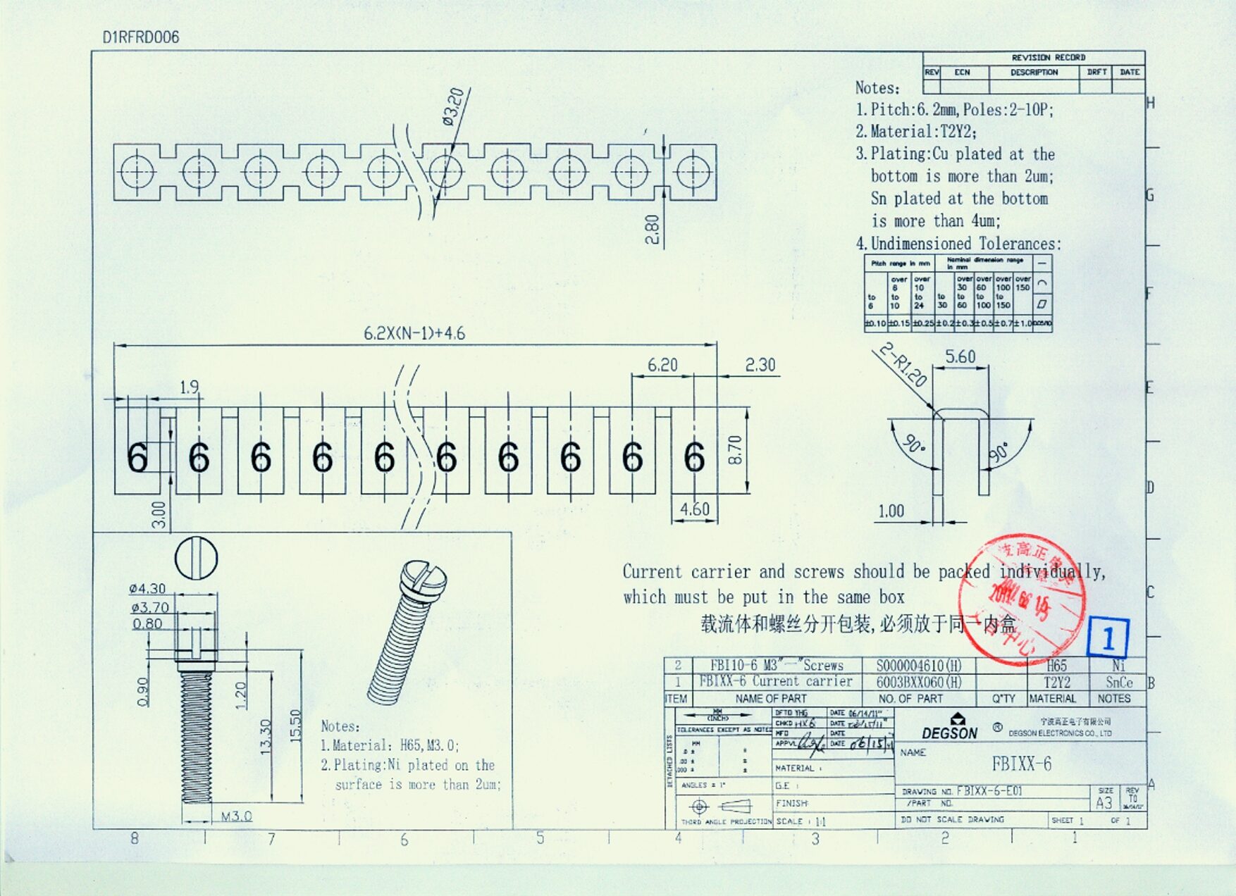 FBI3-6, Перемычка для клемм винтовая, 3 полюса