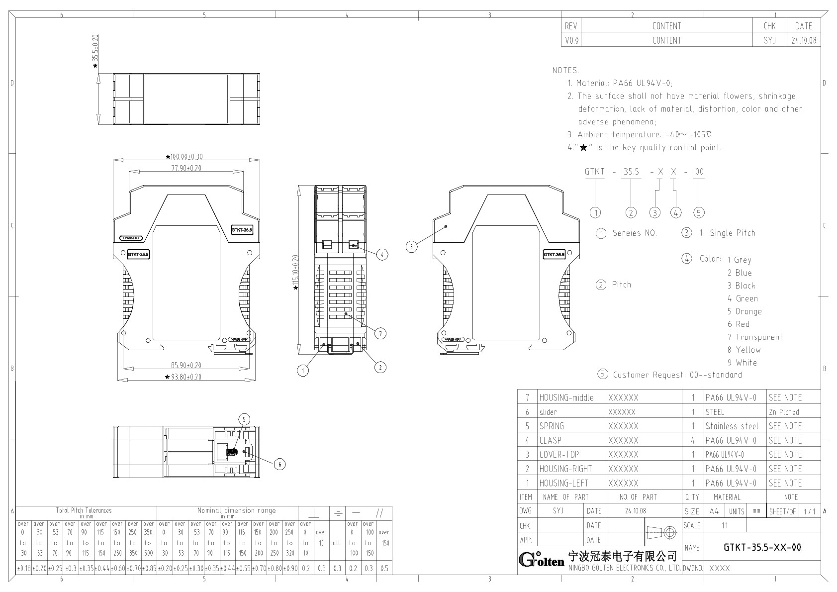 GTKT-35.5-14-00, Корпус пустой, 4 входа, шир 35.5 мм,...