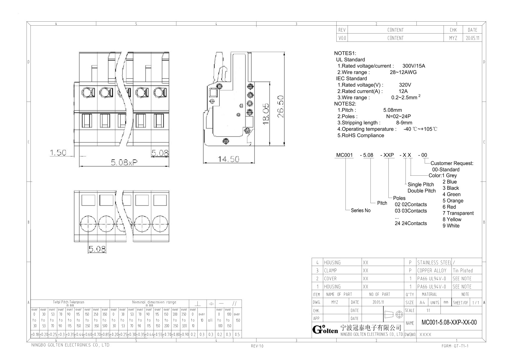 MC001-5.08-03P-15-00, Клемма на печатную плату, 3...