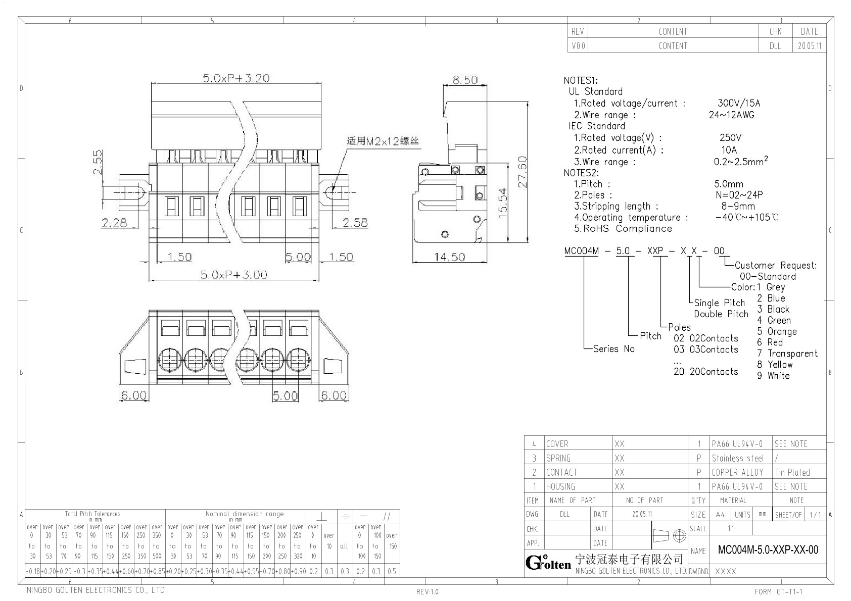 | Шаг на клемме | 5.0 |