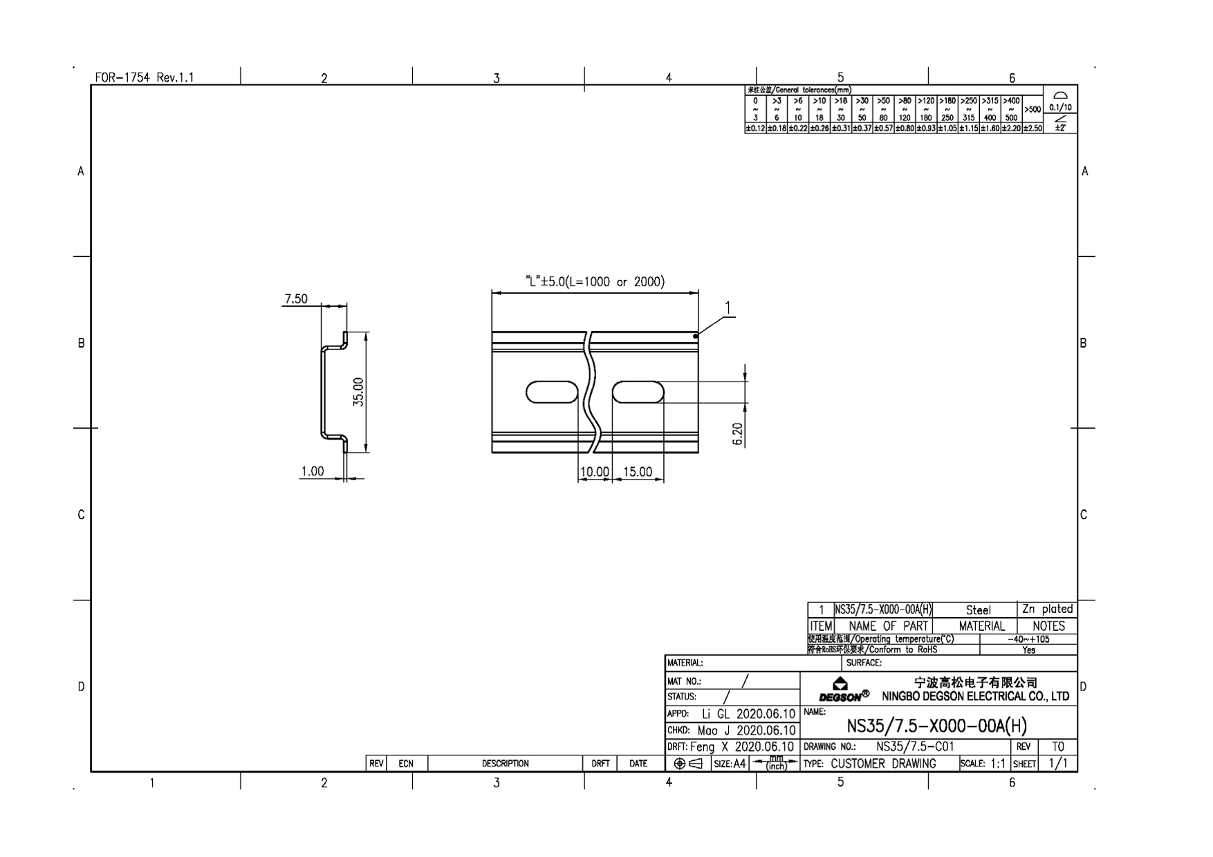NS35/7.5-1000-00Z(H), Дин-рейка, 35×7.5мм,...