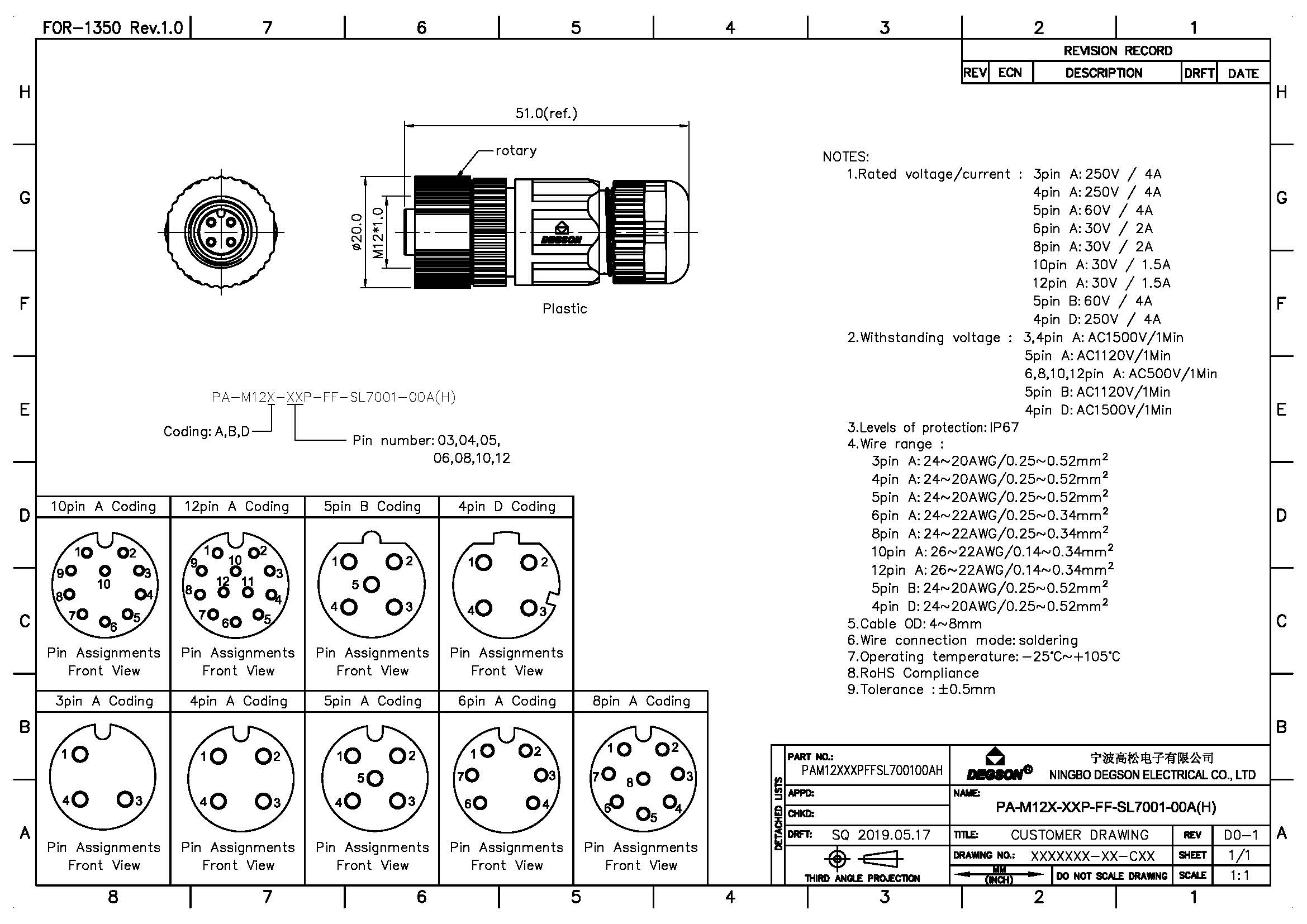 PA-M12A-12P-FF-SL7001-00Z(H), Гнездовой монтажный...