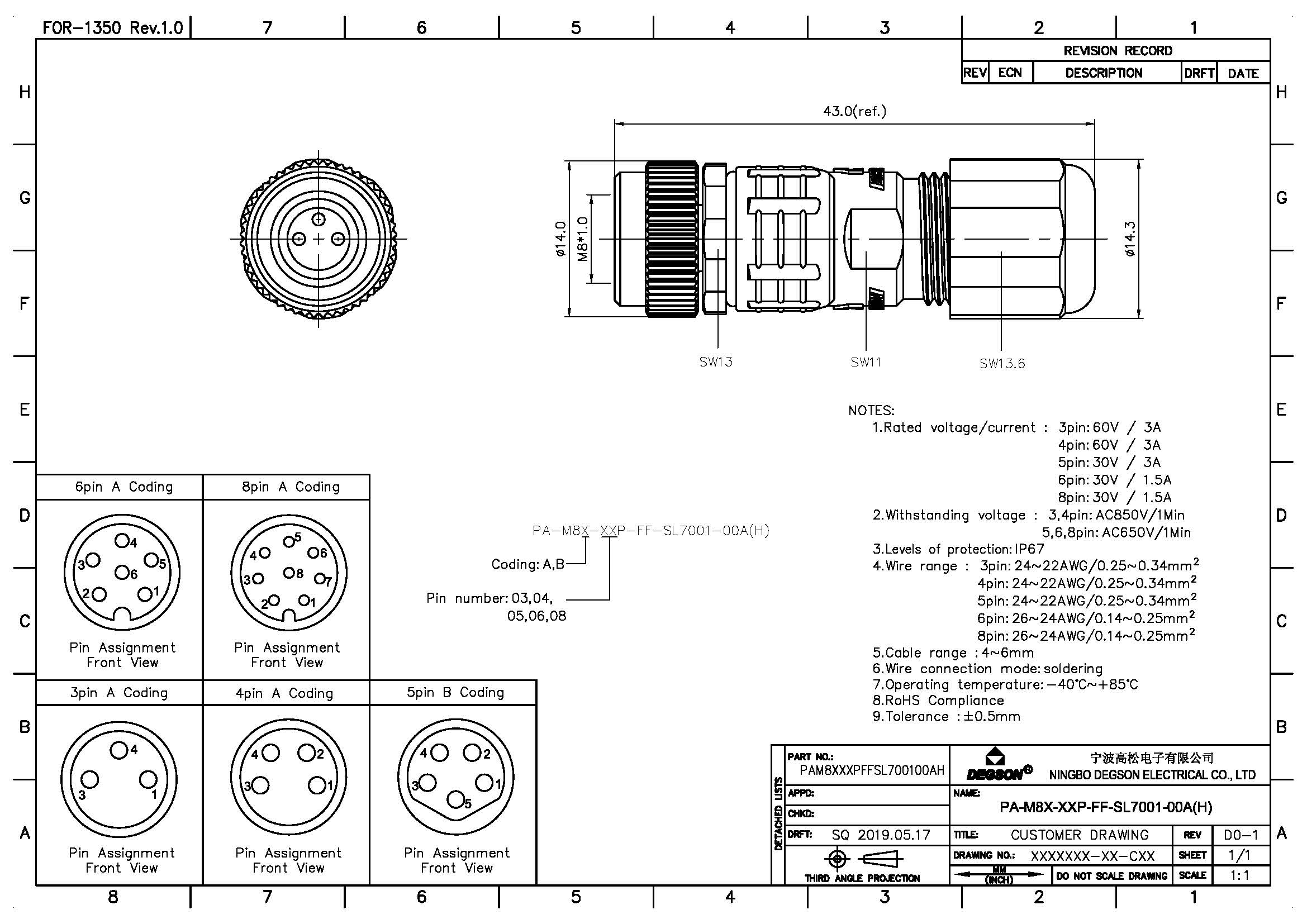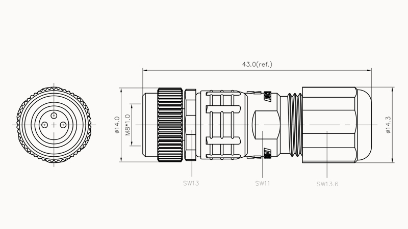 PA-M8A-04P-FF-SL7001-00Z(H), Кабельная розетка, M8, 4...