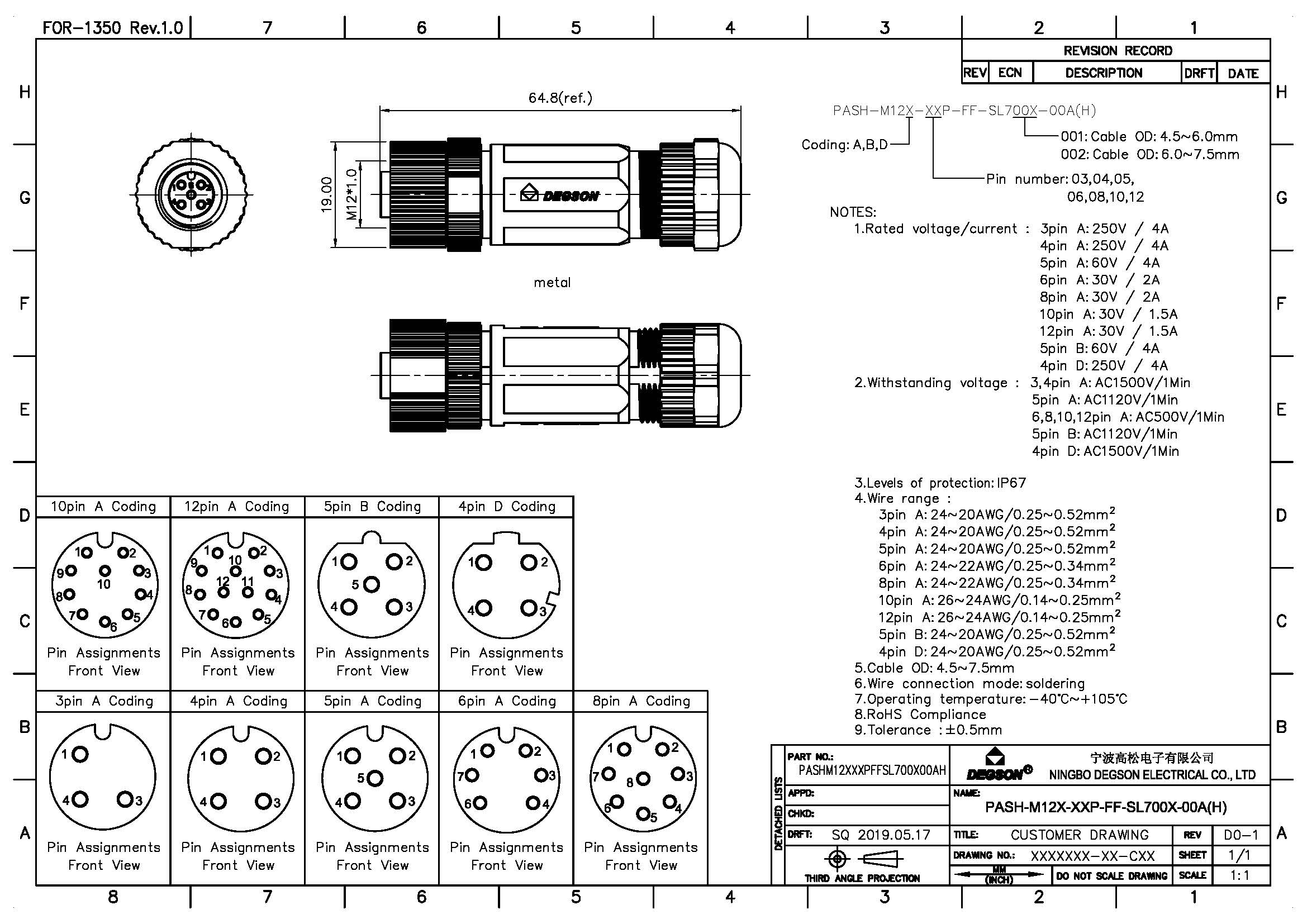 PASH-M12A-05P-FF-SL7002-00Z(H), Монтажный штекер,...