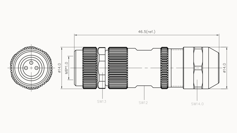 Кабельная розетка, M8, 4 пин,внутр резьба, экран, соед под пайку, прямой