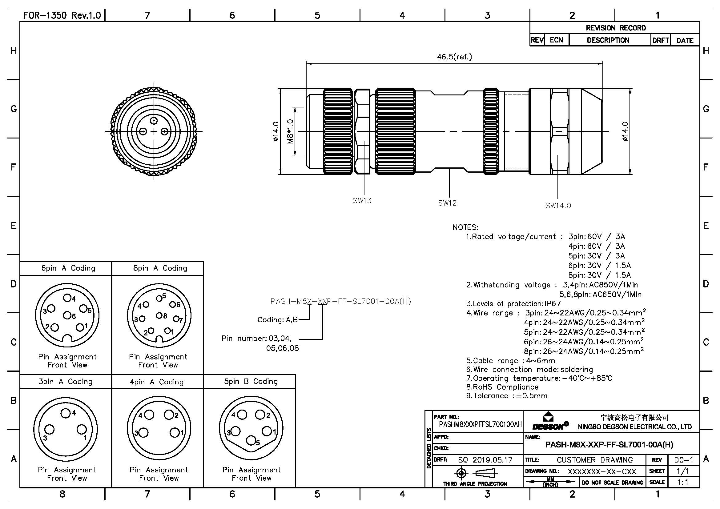PASH-M8A-04P-FF-SL7001-00Z(H), Кабельная розетка, M8,...