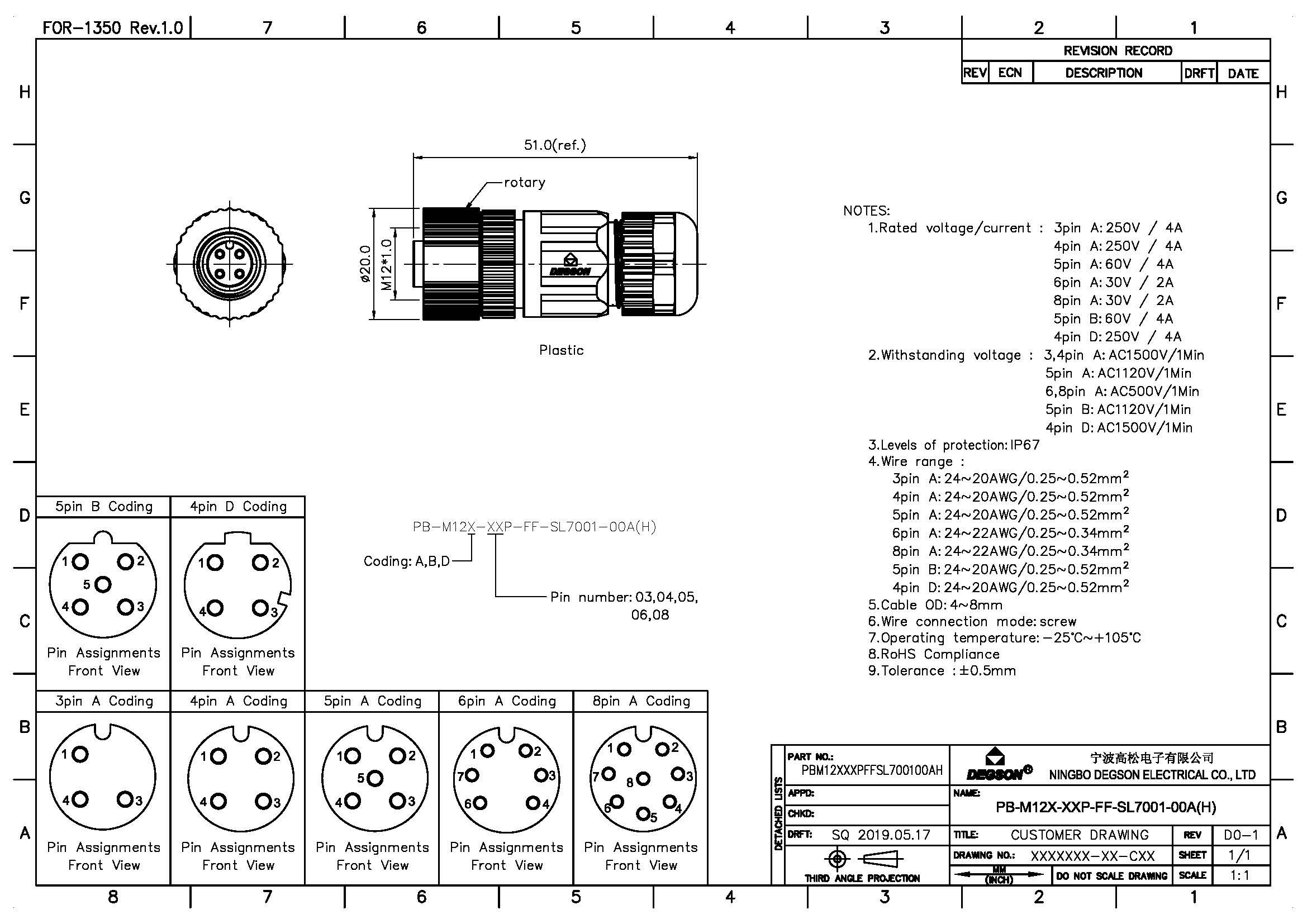 PB-M12A-04P-FF-SL7001-00Z(H), Монтажная розетка M12,...